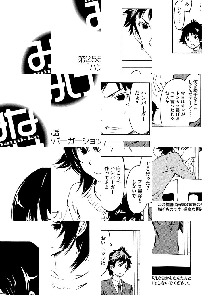 南さんちの3姉妹、その平凡な日常をまったりと。ハルカ、カナ、チアキ、小学生・中学生・高校生と取りそろえた、南家(みなみけ)の3姉妹が贈るワンダフルまったりショートストーリー。他愛もない日常の事件が、時に大きく、いつもは小さく発展していくサマをお楽しみください。