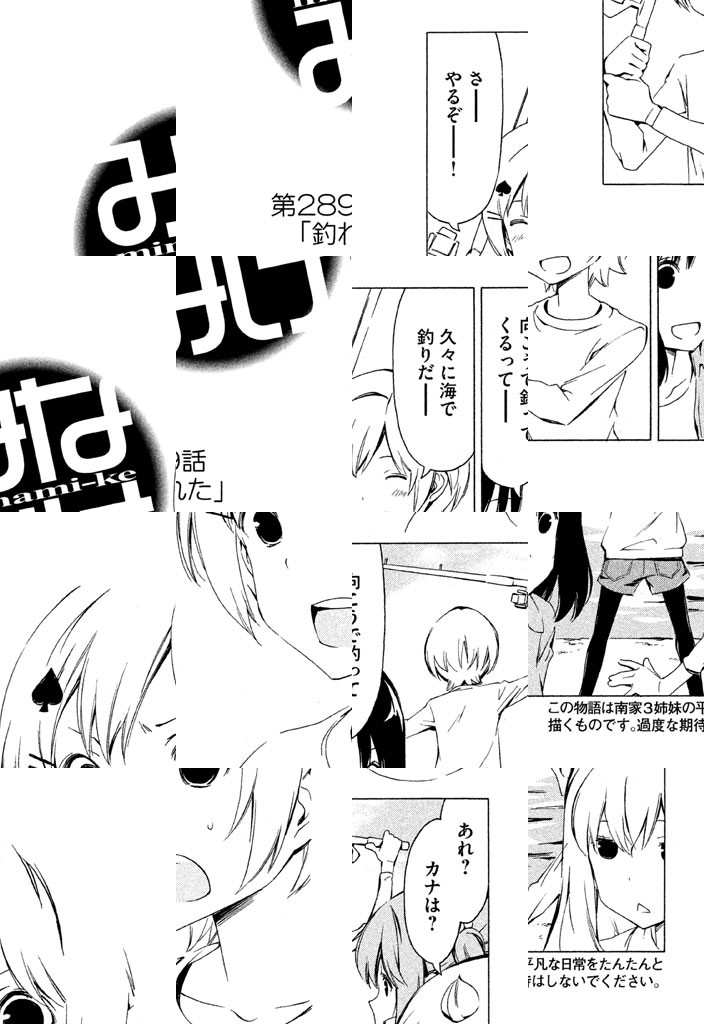 南さんちの3姉妹、その平凡な日常をまったりと。ハルカ、カナ、チアキ、小学生・中学生・高校生と取りそろえた、南家(みなみけ)の3姉妹が贈るワンダフルまったりショートストーリー。他愛もない日常の事件が、時に大きく、いつもは小さく発展していくサマをお楽しみください。