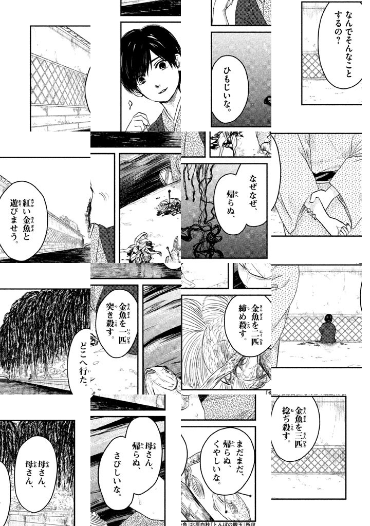 □(シカク:詩歌句)街。そこは近代日本ぽくも幻想の、詩人たちが住まう架空の街。そこには萩原朔太郎、北原白秋、三好達治、室生犀星、高村光太郎らの作品からイメージされたキャラクターたちが、創作者としての業と人間としての幸せに人生を引き裂かれながら詩作に邁進する。実在した詩人の自伝ではなく、萩原朔太郎や北原白秋らの作品から受けた印象をキャラクターとして創作された、詩人たちと近代日本の業と罪と狂気の物語。