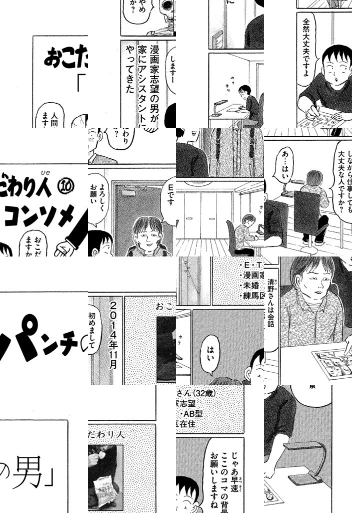 『その「おこだわり」、俺にもくれよ!!』ーーそれは日常の退屈と喜びを描いたノンフィクション漫画の白眉である。著者の清野は、あたたかい眼差しで我々の生活を見つめ、日常に潜む「おこだわり」を抽出する。「僕は貧乏な人は格好がいいと思う」と清貧に生きる人々を賛歌したのは、劇作家の山田太一だったか。清野もまた、ツナ缶、ポテトサラダ、白湯、さけるチーズなど、ゼニのかからぬ喜びを賛歌して余りない。実にタマラン。
