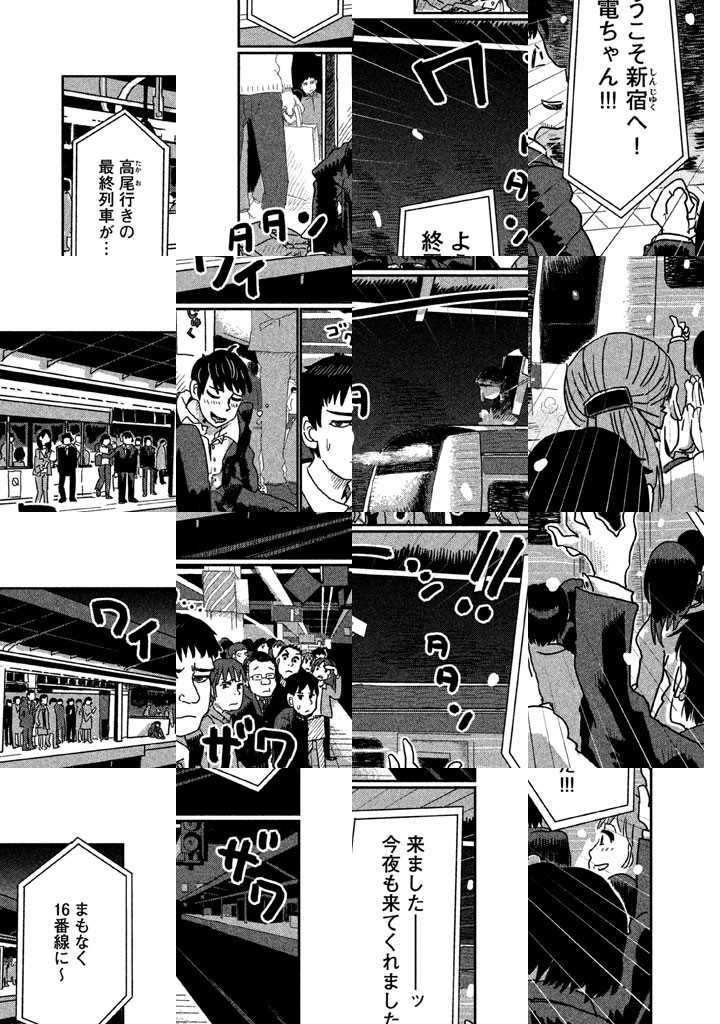 がんばってる人々を、今日も熱心に送り届ける「終電ちゃん」。「お前たち、明日はもっと早い電車で帰るって約束しな!」。終電には、日々を生きる乗客のドラマがある。中央線の高尾行きの終電は、午前1時37分に終点・高尾に到着する。これは全国の鉄道で最も遅い。疲れてて眠いのに、彼女に会えて、なんだかうれしい――。不思議な高揚感と一体感のある、終電物語開幕!!
