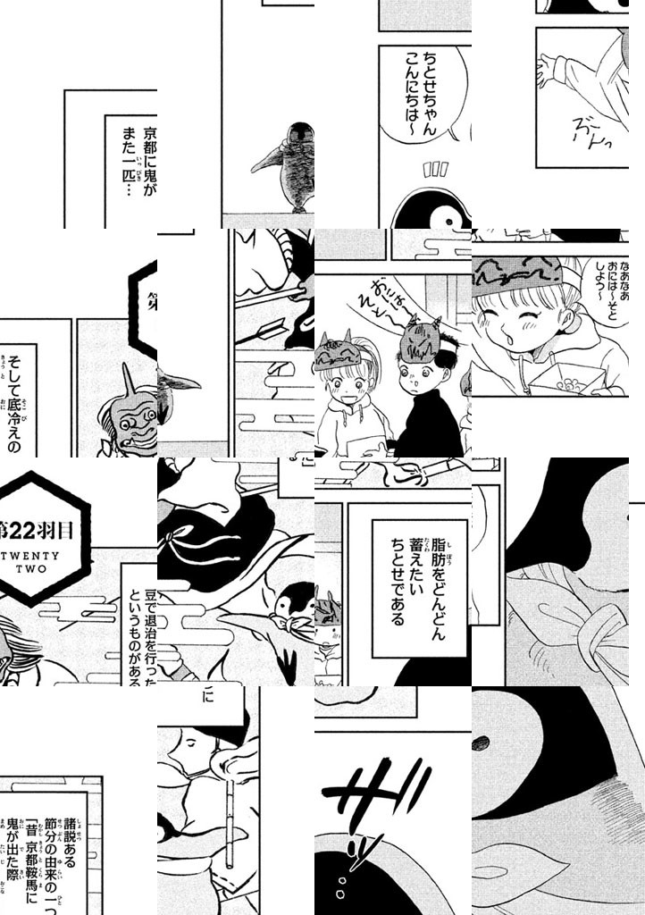 京都に住む子ペンギン、その名もちとせちゃん。もふもふした愛らしい子ペンギンのちとせちゃんは、おいしいものや楽しいことが大好き。人々と触れ合ったり、おいしいものを食べ(させてもらっ)たり――好奇心のおもむくまま、京都の街をうろうろします。清水寺・銀閣寺・祇園……誰もが知っている京都の名所をペンギンの視点から描きます。なつかしくてどこかあたたかい、ほっと心がやすらぐような癒しのペンギンショート。