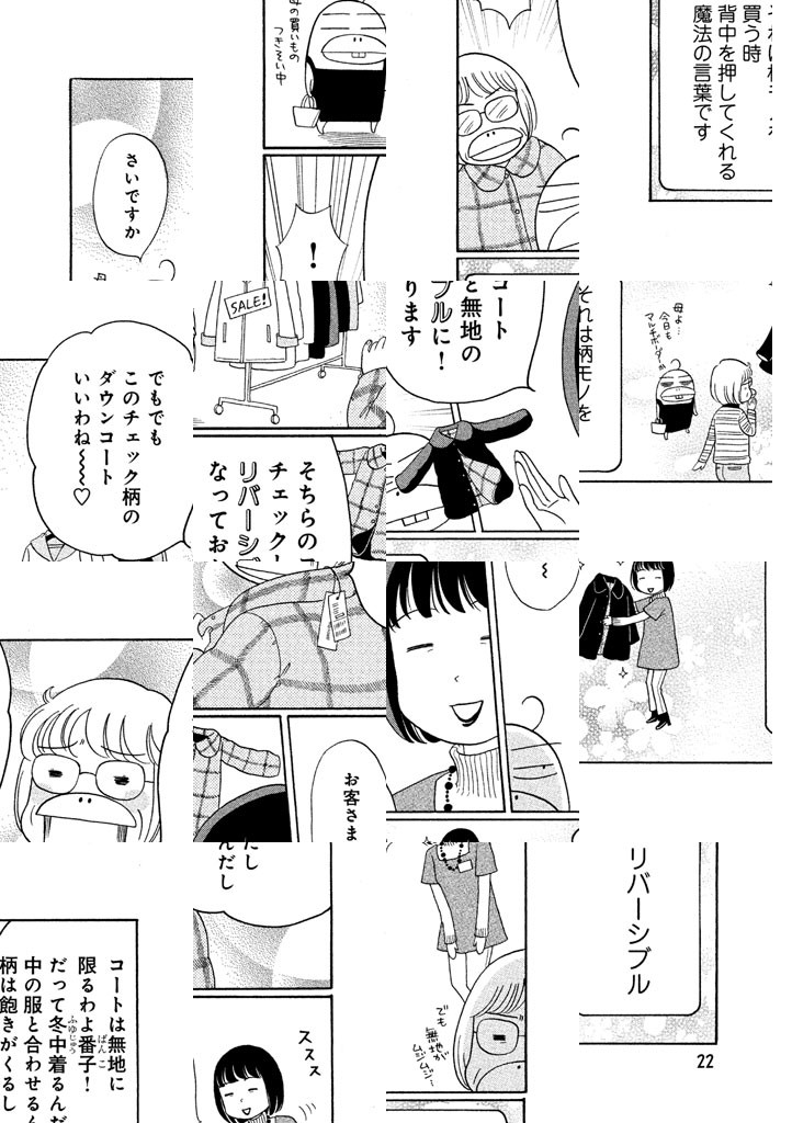 ネームタグの扱い、百貨店フロアの年齢設定、流行の変遷、病院服、ファッション学歴、デニムのすそ上げ、日焼け対策、服vs.バッグ……。番子さんが被服生活の細部にスポットを当ててちまっと描く大共感・非おしゃれ系コミックエッセイ♪ 待望の第1巻!!