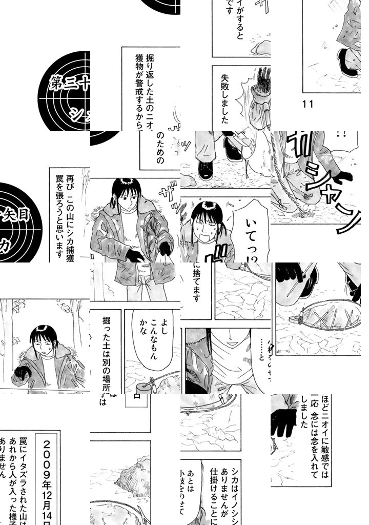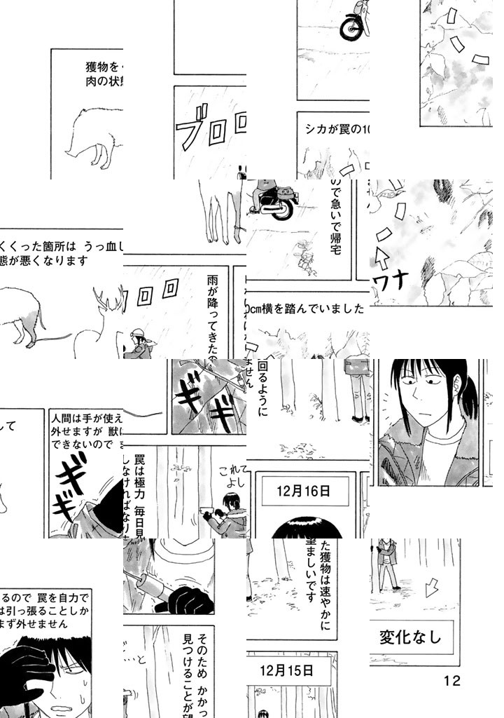 現役猟師、兼マンガ家。岡本健太郎による狩猟&ジビエ喰い実録日誌。ウサギの唐揚げ、カモのロースト、カラスの焼き鳥etc、山グルメ満載!山で迷ったときの心得などサバイバル術も満載!都会を離れ、故郷に戻った男は山に遊び、お気に入りの空気銃「エースハンター」と自作の罠を手に、今日も鳥や獣と勝負する。鳥羽僧正よ、刮目せよ!これぞ二十一世紀の鳥獣戯画だ!(※最後の二文は内容とは関係ありません念のため)
