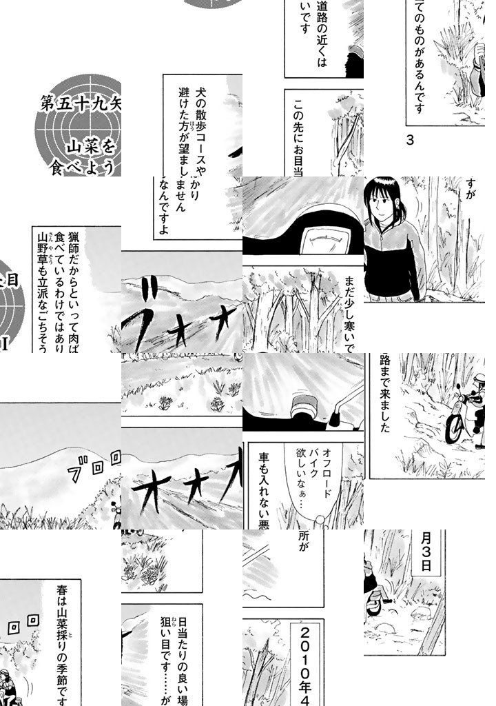 現役猟師、兼マンガ家。岡本健太郎による狩猟&ジビエ喰い実録日誌。ウサギの唐揚げ、カモのロースト、カラスの焼き鳥etc、山グルメ満載!山で迷ったときの心得などサバイバル術も満載!都会を離れ、故郷に戻った男は山に遊び、お気に入りの空気銃「エースハンター」と自作の罠を手に、今日も鳥や獣と勝負する。鳥羽僧正よ、刮目せよ!これぞ二十一世紀の鳥獣戯画だ!(※最後の二文は内容とは関係ありません念のため)