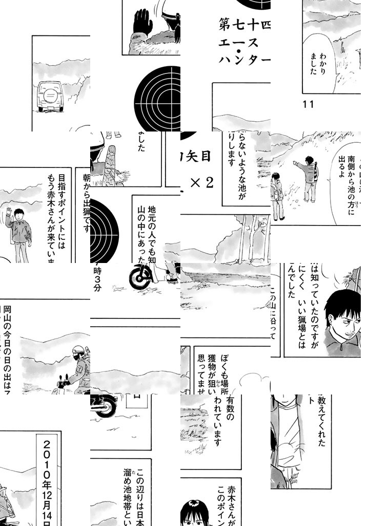 現役猟師、兼マンガ家。岡本健太郎による狩猟&ジビエ喰い実録日誌。ウサギの唐揚げ、カモのロースト、カラスの焼き鳥etc、山グルメ満載!山で迷ったときの心得などサバイバル術も満載!都会を離れ、故郷に戻った男は山に遊び、お気に入りの空気銃「エースハンター」と自作の罠を手に、今日も鳥や獣と勝負する。鳥羽僧正よ、刮目せよ!これぞ二十一世紀の鳥獣戯画だ!(※最後の二文は内容とは関係ありません念のため)