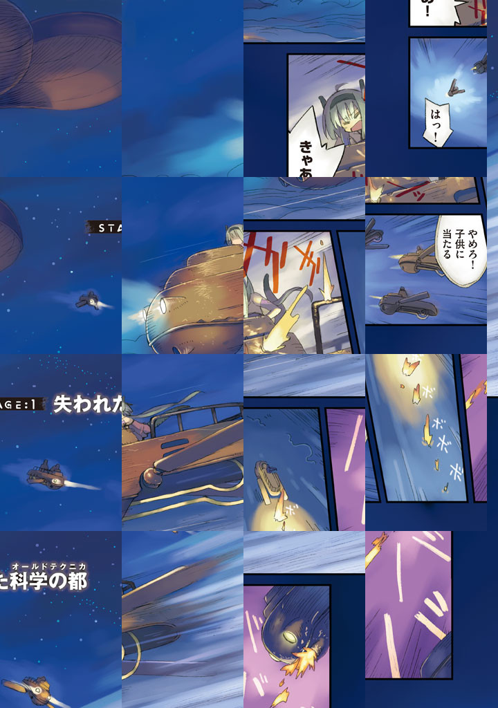 過去の科学技術を現代に再現した「テクノ教団」が、人々の生活を支えている世界――。 古代の機械が闊歩する遺跡を盗掘して生計を立てていた青年・ザッシュは、ある日、空から小型の飛行機が落ちてくるのに遭遇する。それに一人で乗っていた少女・リューネは、テクノ教団に「酷いこと」をされ、逃げてきたと語る。リューネをかくまうザッシュだったが、裏の顔を露にしたテクノ教団によって、致命傷を負わされてしまい――。
