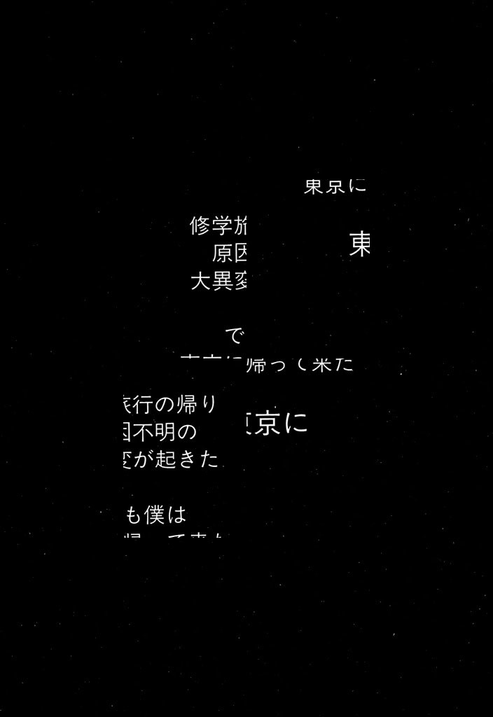 20世紀最後に放たれた、恐怖の大巨編「世紀末サバイバル」!! 修学旅行帰りの新幹線は、突然のトンネル落盤事故によってすべての光を失った……!! 闇につつまれ、血みどろになった凄惨な“墓所”。生存者はテル、アコ、ノブオ、3名のみ。ほか全員、即死……。酸素も食料も出口すらも断たれた少年たちは、次第に壊れゆく「心」と闘いながら、動きはじめる。たったひとつの“希望”――「東京に、家族のもとに帰ること」を、生き延びるための支えとして……!!!!
