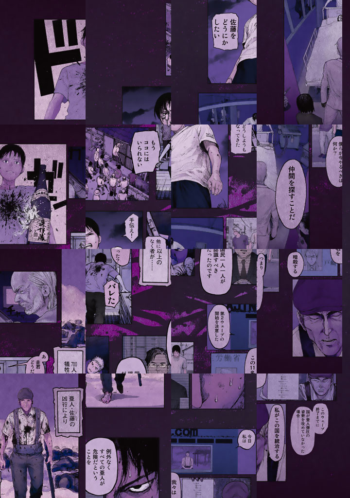 「亜人」と呼ばれるその生物は「死なない」。高校生・永井圭はある日、交通事故で死ぬが、その直後に生き返った。それは、彼が亜人であり、人間ではないことを意味する。圭をとりまく環境は一変した。彼は人間たちから逃げ惑うことになる。友人のカイは怯える圭を助けるために駆けつけ、二人で人里を離れて山の中に逃げ込んだ。そんな彼に人間と敵対する亜人たちが接触してきた。
