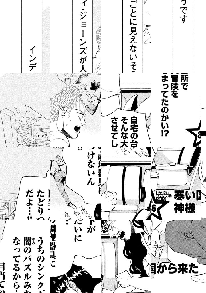 目覚めた人ブッダ、神の子イエス。世紀末を無事に越えた二人は、東京・立川でアパートをシェアし、下界でバカンスを過ごしていた。近所のおばあちゃんのように、細かいお金を気にするブッダ。衝動買いが多いイエス。そんな“最聖”コンビの立川デイズ。