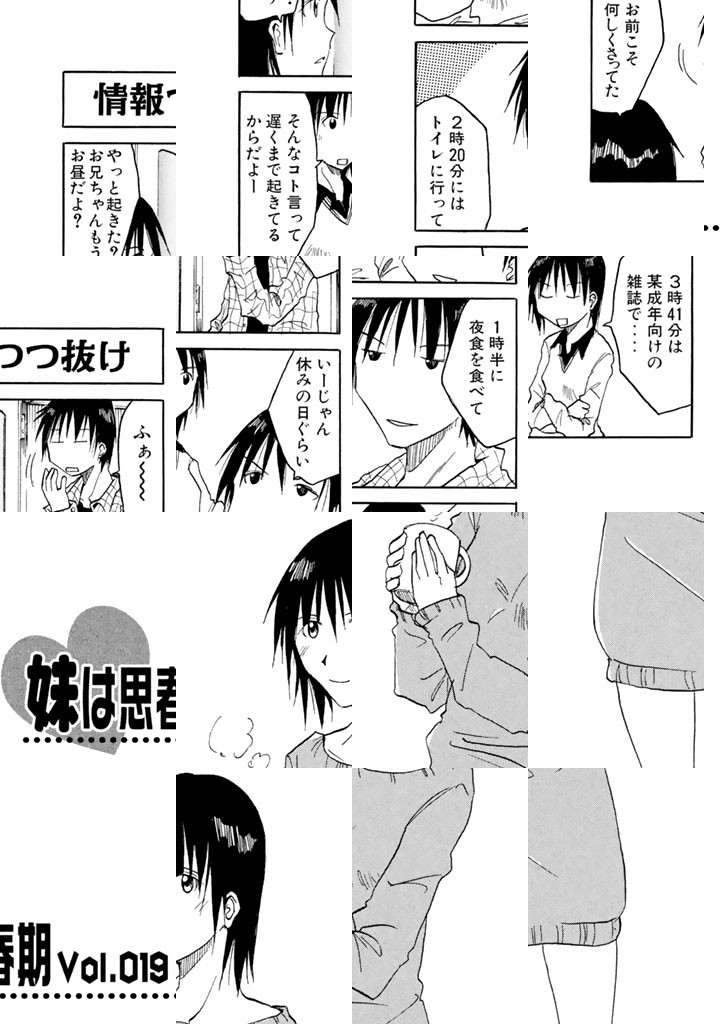 微妙な兄妹愛4コマ念願の兄と同じ高校に合格した妹・城島カナミ。カワイくて、なかなか成績優秀で料理も得意な、よくできた妹。しかし天然なのかネタなのか思春期パワーでなんでも下ネタにもっていく彼女の言動に、兄・シンジはふりまわされる!!