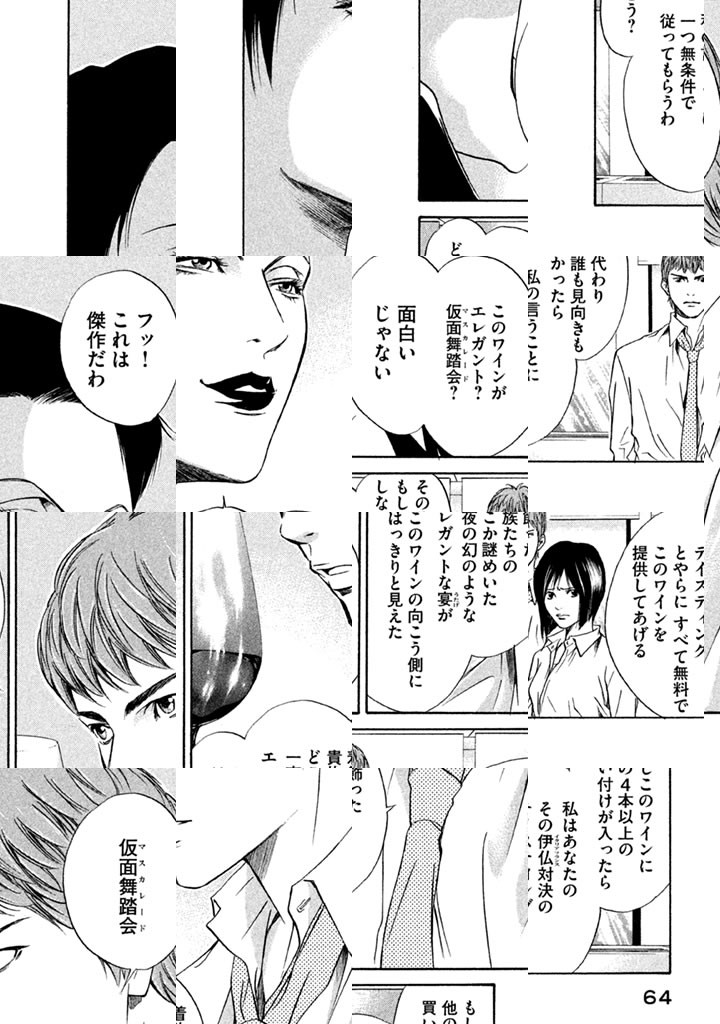 世界の市場価値を左右するワイン評論家・神咲豊多香がこの世を去り、時価20億円を超えるワインコレクションが遺された。その頂点に立つ最上の一本こそが『神の雫』である――。彼が選んだ12本のワイン『使徒』と『神の雫』の銘柄、および生産年を言い当てた者のみが、遺産を手に入れることができるのだ。この『使徒』対決に実の息子・雫と養子である一青が挑む!