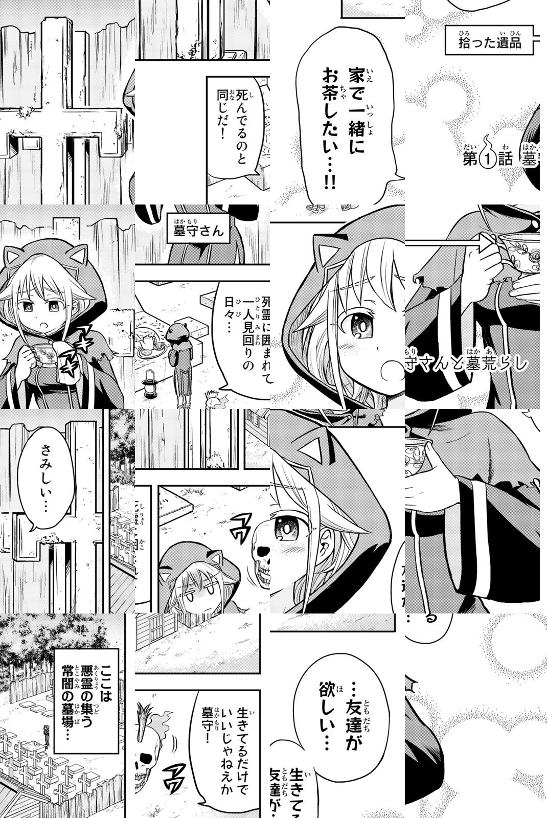 まわりにいるのは変わった霊ばかりのキュートな墓守さんが、借金苦で墓荒らしにやってきた貧乏な少年サンと友達になりたくて、あの手この手(ほとんどお金)でおもてなしを繰り広げる! 寂しい墓守ガールと借金苦ボーイのピュアラブコメ!寂しいけど何故かキュートな墓守さんが、借金返済のため墓荒らしにやってきた貧乏な少年サンと友達になりたくて、あの手この手(お金をあげます)でおもてなし! まわりにあふれる霊たちも加わって、墓守さんの応援&邪魔を繰り広げることに。お金で釣ろうとするのに、ピュアなラブコメ観満載のショートコメディ!