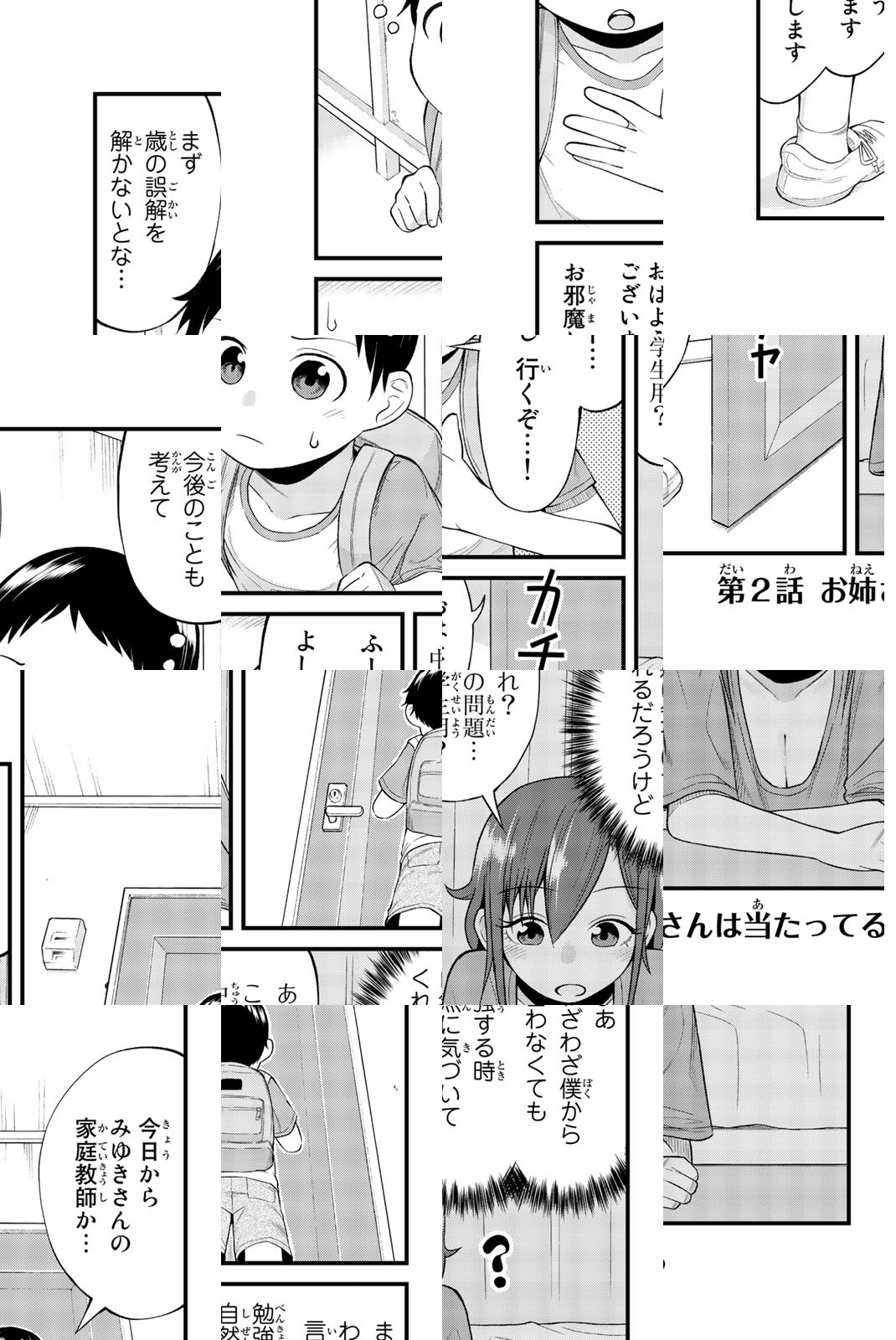 僕(中1)、だらしなカワイイ家庭教師に小2と思われてます! 距離感ほぼゼロのドキドキお勉強(!?)デイズ!従姉の女子大生・みゆきお姉さんに勉強を見てもらうことになった中学1年生の正義くん。ダルダルのTシャツ1枚で出てきたお姉さんは、正義くんをなんと小学2年生と勘違い!ただでさえスキだらけで目のやり場に困るお姉さんが、子供扱いするのでさらに距離感近めに! その上、秒で勉強に飽きたお姉さんは、様々な遊びを仕掛けてきて‥‥!?ダルダルのTシャツとほとんど見えないホットパンツ。目のやり場に困る部屋着で出迎えてくれた家庭教師のお姉さんは、中1の僕を小2と勘違い! 距離感近すぎな上、勉強そっちのけでヘンな遊びを仕掛けてきて!? 【だらしなカワイイ】お姉さんとの年齢詐称ドキドキ家庭教師デイズ!