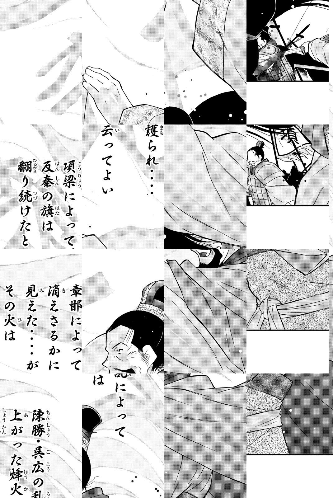 紀元前・中国‥大陸は一人の男によって初めて統一される。後の世にはその本当の名より、初めての皇帝「始皇帝」の名で知られる絶対者の支配は苛烈を極めた。その支配者を討たんと、一人東に向かう男あり‥名を張良、字を子房という。後の天才軍師・張良を主役に据えた川原版“項羽と劉邦”堂々開幕!!