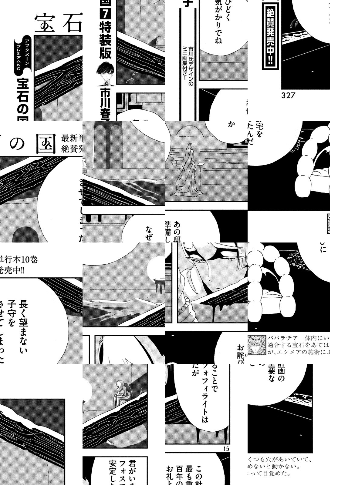 「この星には、かつて“にんげん”という動物がいたという」――今から遠い未来、宝石のカラダを持つ28人は、彼らを装飾品にしようと襲い掛かる月人に備えるべく、戦闘や医療などそれぞれの持ち場についていた。月人と戦うことを望みながら、何も役割を与えられていなかったフォスは、宝石たちを束ねる金剛先生から博物誌を編むように頼まれる――。 「このマンガがすごい!2014」オトコ編第10位にランクイン! 2017年テレビアニメ化! 市川春子が描く、戦う宝石の物語。