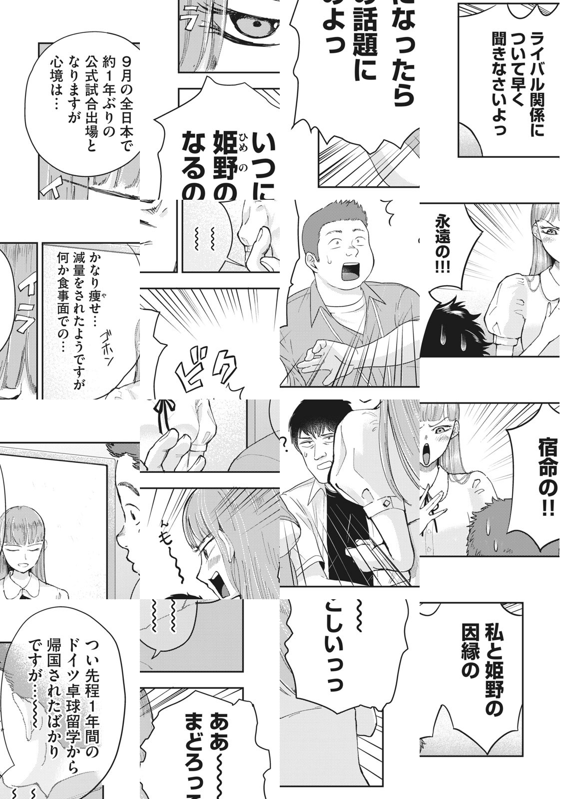 卓球が大好きなのに、入部テストに落ちて卓球部に入れなかった高校2年生のムツ。毎日後輩のタマキ氏と一緒に屋上でコソコソと卓球の練習を続けるも、そこに突然見知らぬ黒ギャルが現れ‥‥!? 変なギャルとの出会いが、少年たちの青春を大きく塗り替えていく。屋上からはじまる、ブチアゲ☆スポ根青春譚!!