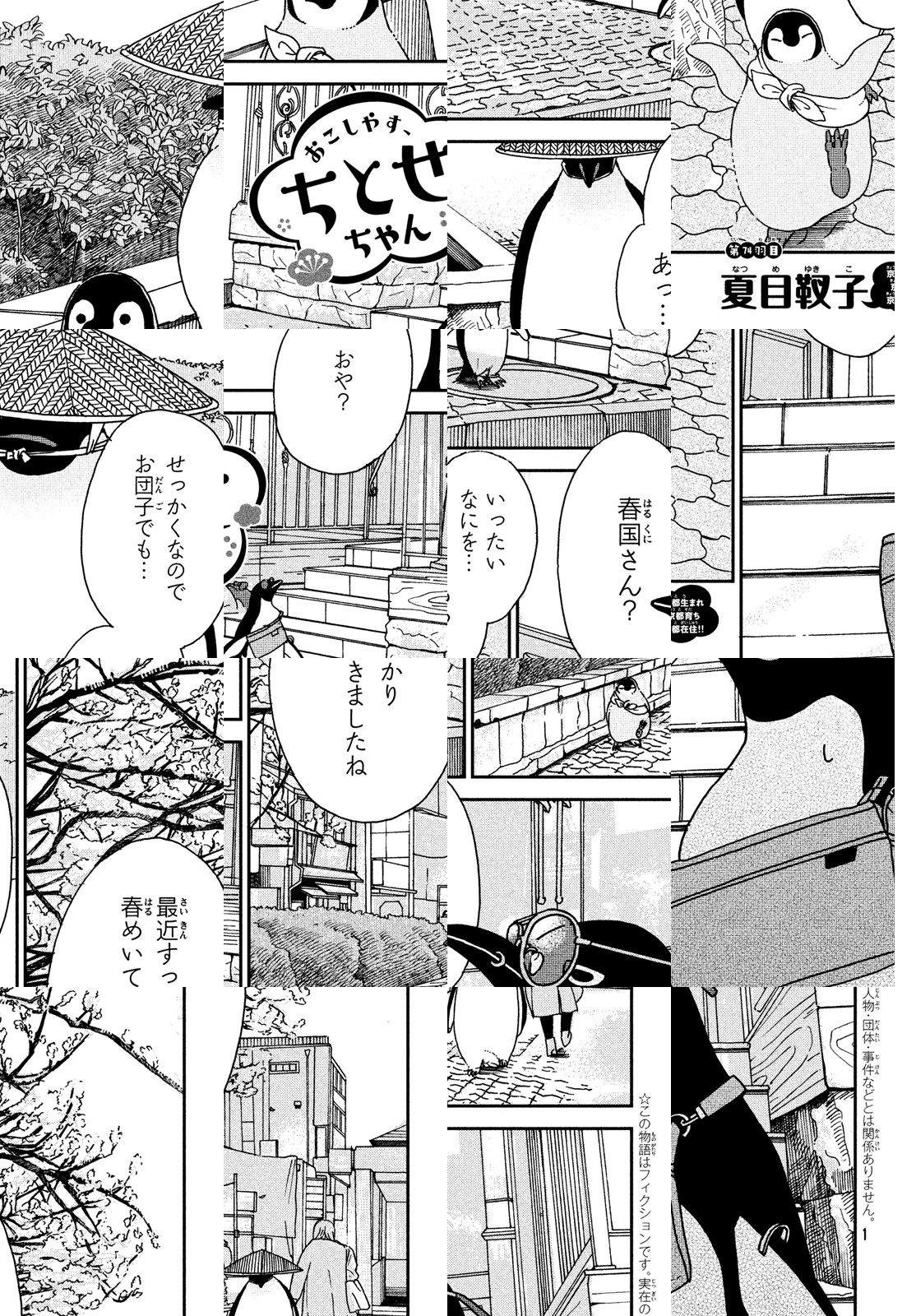 京都に住む子ペンギン、その名もちとせちゃん。もふもふした愛らしい子ペンギンのちとせちゃんは、おいしいものや楽しいことが大好き。人々と触れ合ったり、おいしいものを食べ(させてもらっ)たり――好奇心のおもむくまま、京都の街をうろうろします。清水寺・銀閣寺・祇園……誰もが知っている京都の名所をペンギンの視点から描きます。なつかしくてどこかあたたかい、ほっと心がやすらぐような癒しのペンギンショート。
