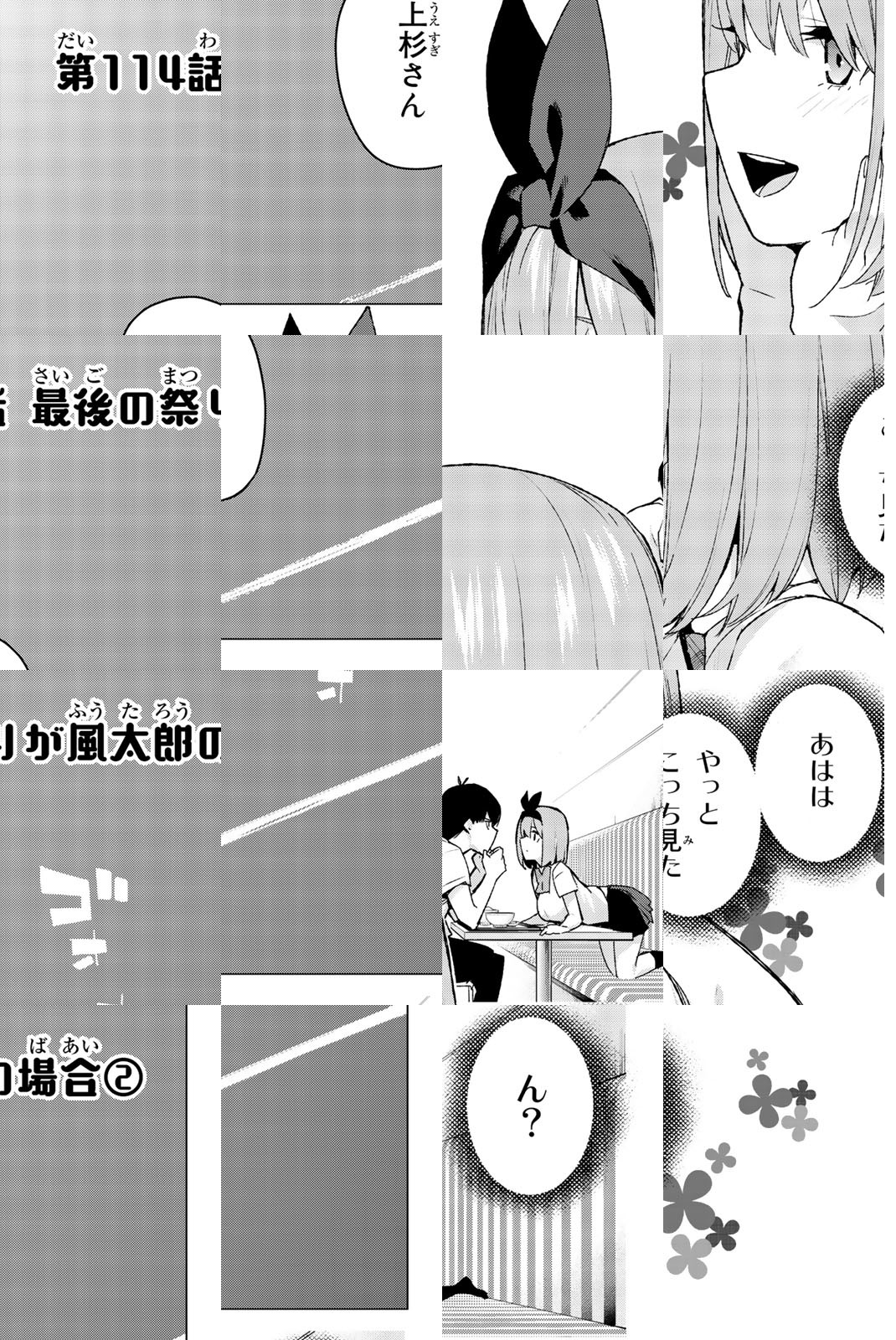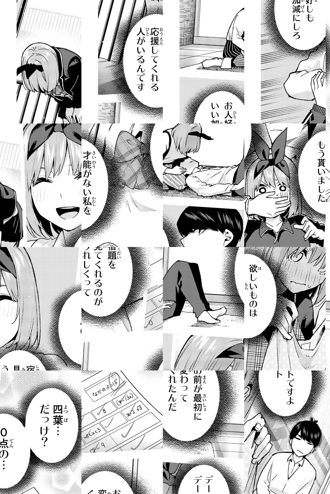 貧乏な生活を送る高校2年生・上杉風太郎のもとに、好条件の家庭教師アルバイトの話が舞い込む。ところが教え子はなんと同級生!! しかも五つ子だった!! 全員美少女、だけど「落第寸前」「勉強嫌い」の問題児! 最初の課題は姉妹からの信頼を勝ち取ること…!? 毎日がお祭り騒ぎ! 中野家の五つ子が贈る、かわいさ500%の五人五色ラブコメ開演!!