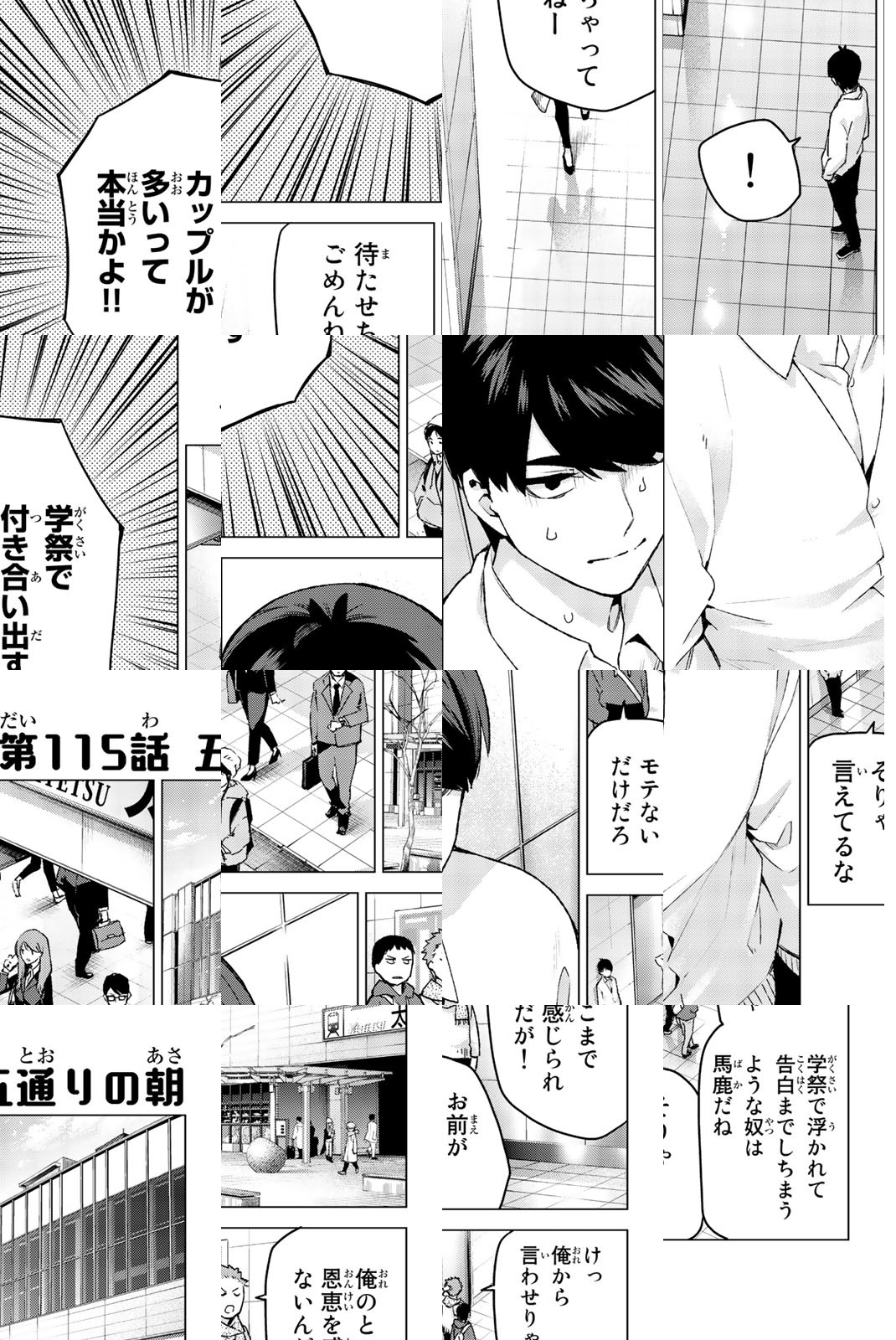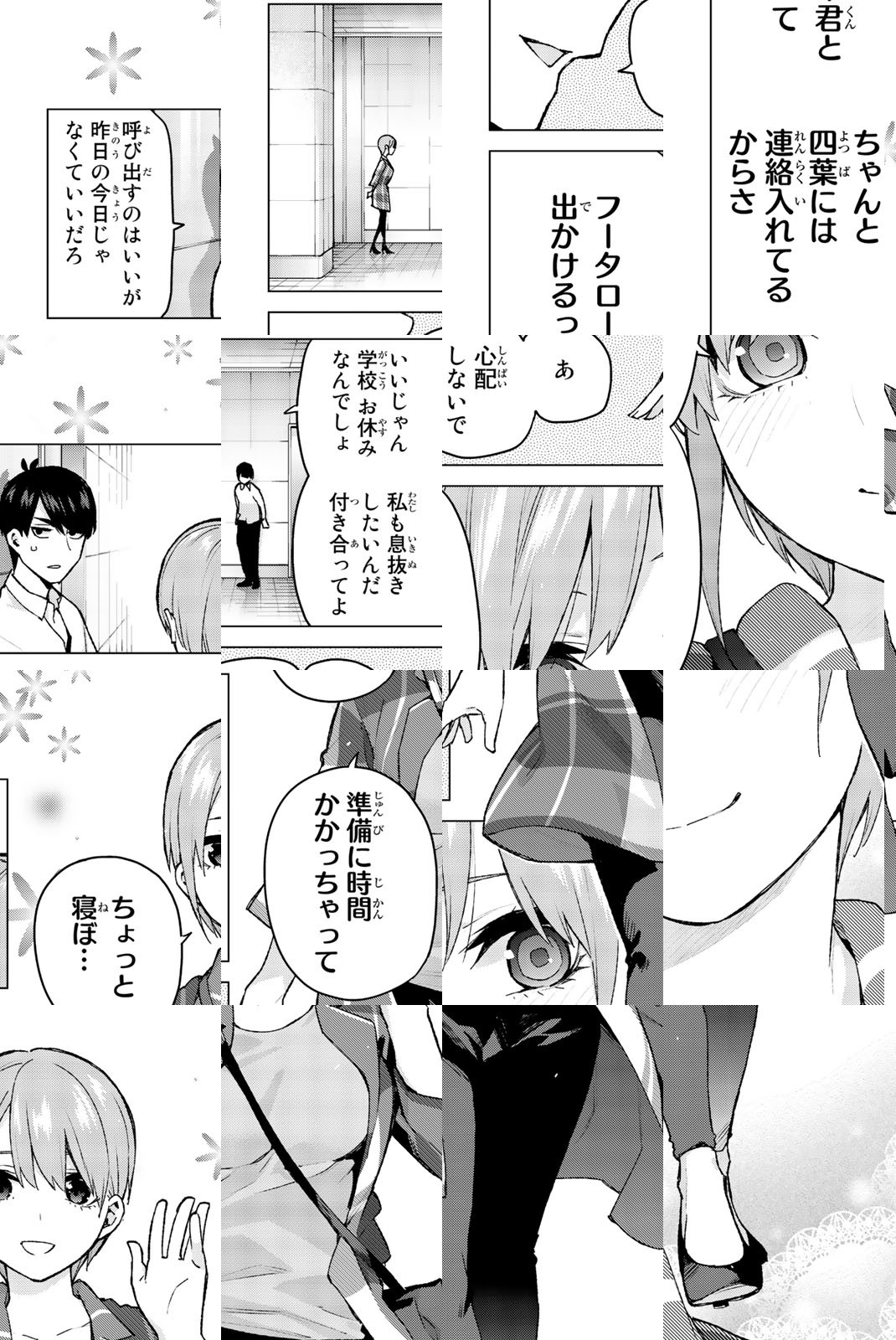 貧乏な生活を送る高校2年生・上杉風太郎のもとに、好条件の家庭教師アルバイトの話が舞い込む。ところが教え子はなんと同級生!! しかも五つ子だった!! 全員美少女、だけど「落第寸前」「勉強嫌い」の問題児! 最初の課題は姉妹からの信頼を勝ち取ること…!? 毎日がお祭り騒ぎ! 中野家の五つ子が贈る、かわいさ500%の五人五色ラブコメ開演!!