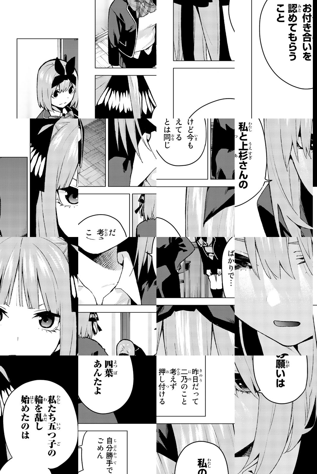 貧乏な生活を送る高校2年生・上杉風太郎のもとに、好条件の家庭教師アルバイトの話が舞い込む。ところが教え子はなんと同級生!! しかも五つ子だった!! 全員美少女、だけど「落第寸前」「勉強嫌い」の問題児! 最初の課題は姉妹からの信頼を勝ち取ること…!? 毎日がお祭り騒ぎ! 中野家の五つ子が贈る、かわいさ500%の五人五色ラブコメ開演!!
