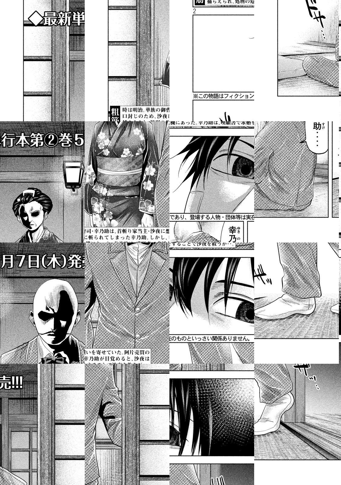 明治4年。特権階級「華族」の御曹司・幸乃助は、「一度も勃ったことがない」という悩みをひた隠して生きていた。そんな中、幸乃助は江戸時代から続く首斬り家の当主・沙夜と出会う。彼女の首斬りを目撃した時、幸乃助の中で、どす黒い何かがうめき出す!! 情欲から始まる、血と性のノーブル・ロマン!!