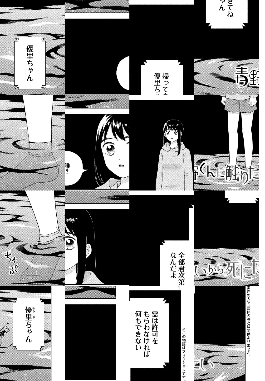 君に触れるなら、死んでもいいよ。これがわたしの愛なんだ。アフタヌーン公式サイト「モアイ」掲載の1話が300000PV突破で話題! 天然少女・優里ちゃんと、その彼氏・青野くん。ごく普通のお付き合いをしていたふたりだが、ある日突然、青野くんが「いなくなって」しまう……。絶対に結ばれないし、触れ合えないふたりの、でたらめで切実すぎるラブ・ストーリー。