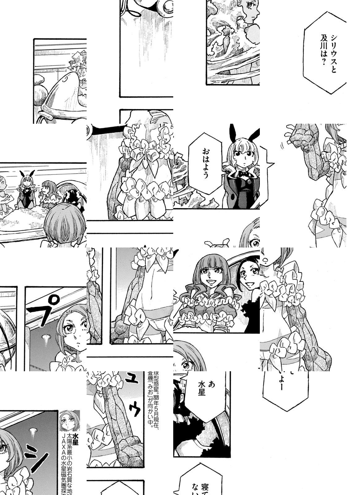 私達が子供たち、またその子供たちに残したのは、七色の空と灰色の嵐でした。空は曜日によって七色に変化し、街中に愛と希望と萌えがあふれる「内側」の世界。主人公S沢はそこから職場に向かう。灰色の嵐が吹き荒れ、防御服がないと大地を踏むことすらできぬ「外側」の世界へ——。『もやしもん』でミクロの世界を活写した石川雅之の、衝撃的ブランニューワールド!!
