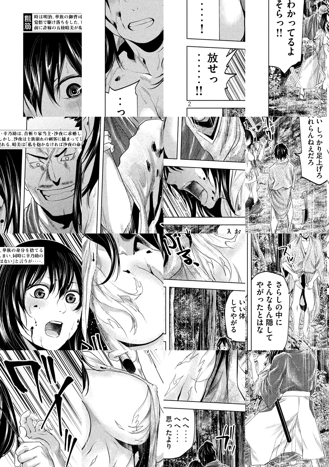 明治4年。特権階級「華族」の御曹司・幸乃助は、「一度も勃ったことがない」という悩みをひた隠して生きていた。そんな中、幸乃助は江戸時代から続く首斬り家の当主・沙夜と出会う。彼女の首斬りを目撃した時、幸乃助の中で、どす黒い何かがうめき出す!! 情欲から始まる、血と性のノーブル・ロマン!!