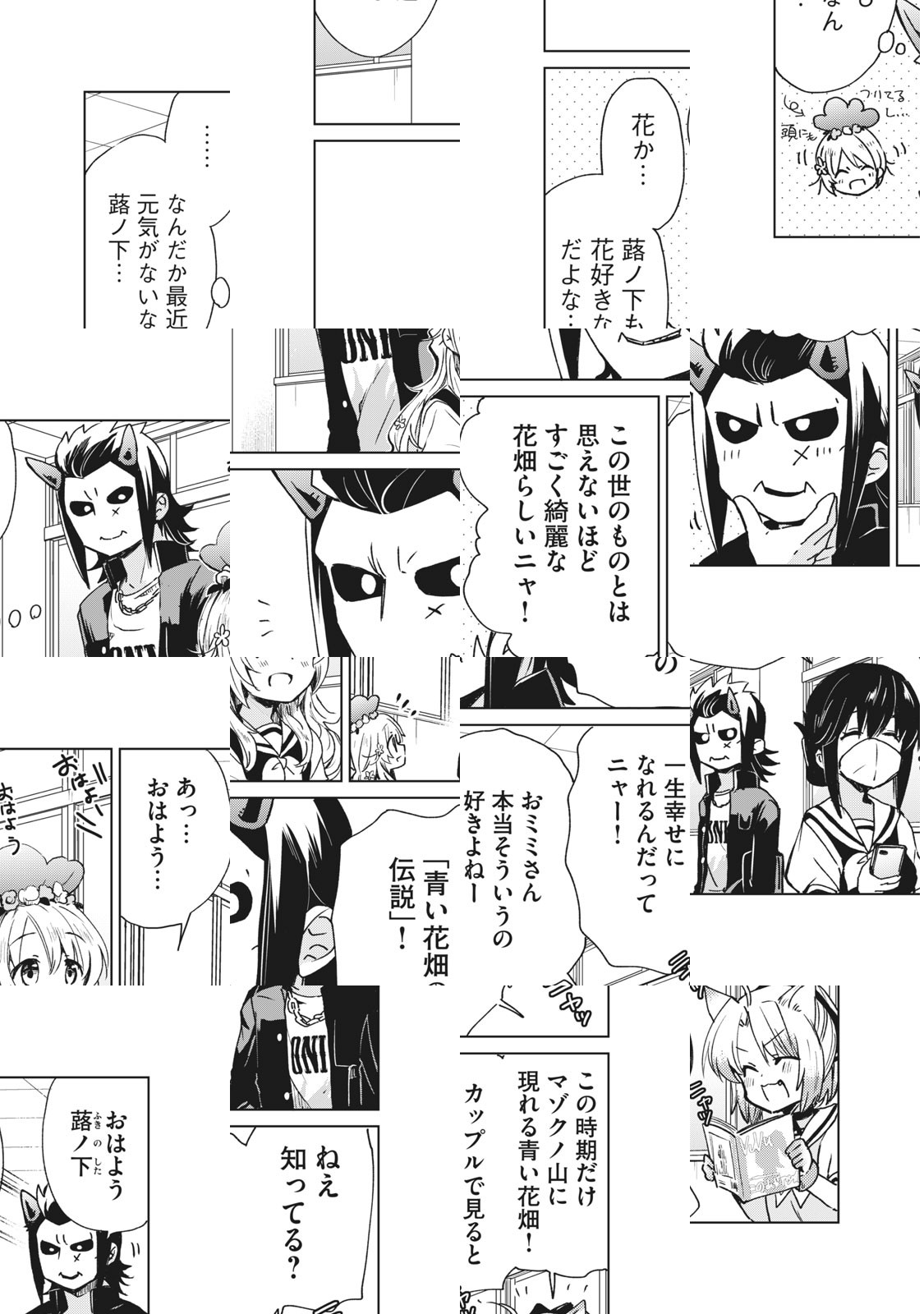 品行方正で手のひらサイズの花コビト族・蕗ノ下さんは高校の人気者。一方、幼なじみでオニと人間のハーフ・鬼ヶ島くんはちょっぴりヤンキーなはみ出し者。お互い好意があるのに素直になれない2人を中心に繰り広げられる、にぎやかわいい異種間ラブコメここに開幕!