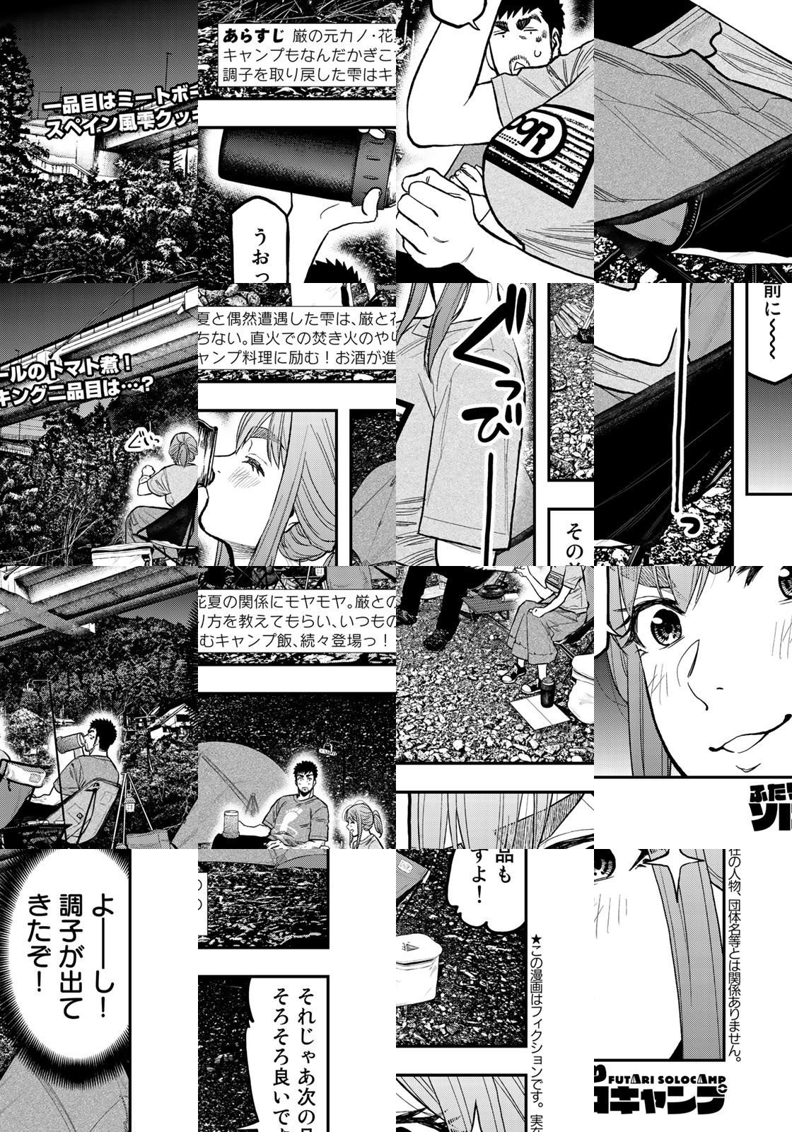 オレは樹乃倉厳。34歳。趣味はキャンプ。独りで野営する生粋のソロキャンパー。車はいらない。電車を乗り継ぎ、最後はバスで山に入る。自然を愛してる、火を木を水を土を。それと同等に孤独な自分の生き方を愛している―ーー。…な俺が! ひょんなことから草野雫20歳という小娘に出会い、ふたりでソロキャンプをするはめに!
