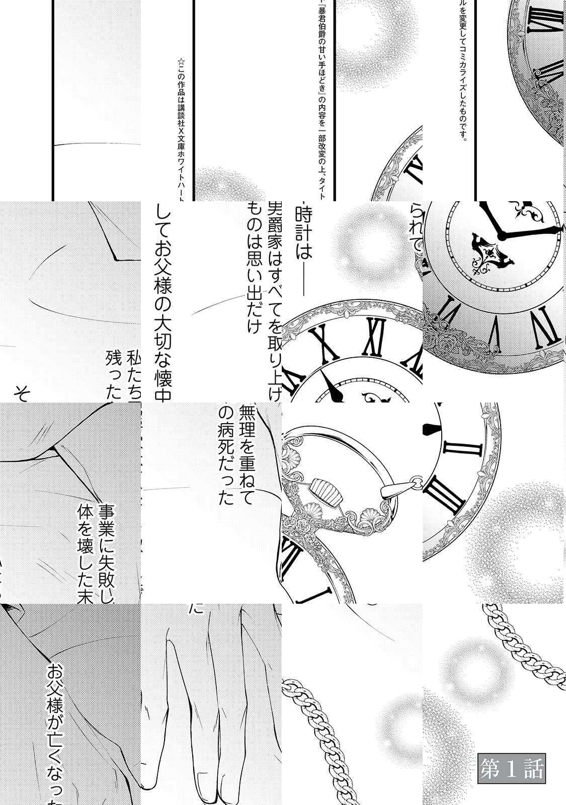 父の事業の失敗により没落してしまったダーレン男爵家の娘・アリシア。男爵家を陥れて莫大な借金を負わせ、さらには父の大切な遺品だった懐中時計すらも奪っていったのは、悪名高きウォルター伯爵であったことを知ったアリシアは、「お父様の懐中時計を取り戻し、ウォルター伯爵の悪事を暴いて法の裁きを!」と復讐を胸に誓う。だがウォルター伯爵は、レンダリア王国屈指の大貴族。その伯爵の妹の家庭教師となるべく身分を偽り、伯爵家に潜入することになったアリシア。金に汚く傲慢な悪魔のような男と聞いていたはずのウォルター伯爵だったが、目の前に現れたのは、冷たい青い瞳が印象的な美丈夫だった。困惑しながらも、妹・キャロルへの教育方針について対立したアリシアに、ウォルター伯爵は突然…!? ※この作品は講談社X文庫ホワイトハート『暴君伯爵の甘い手ほどき』の内容を一部改変の上、タイトルを変更してコミカライズしたものです。