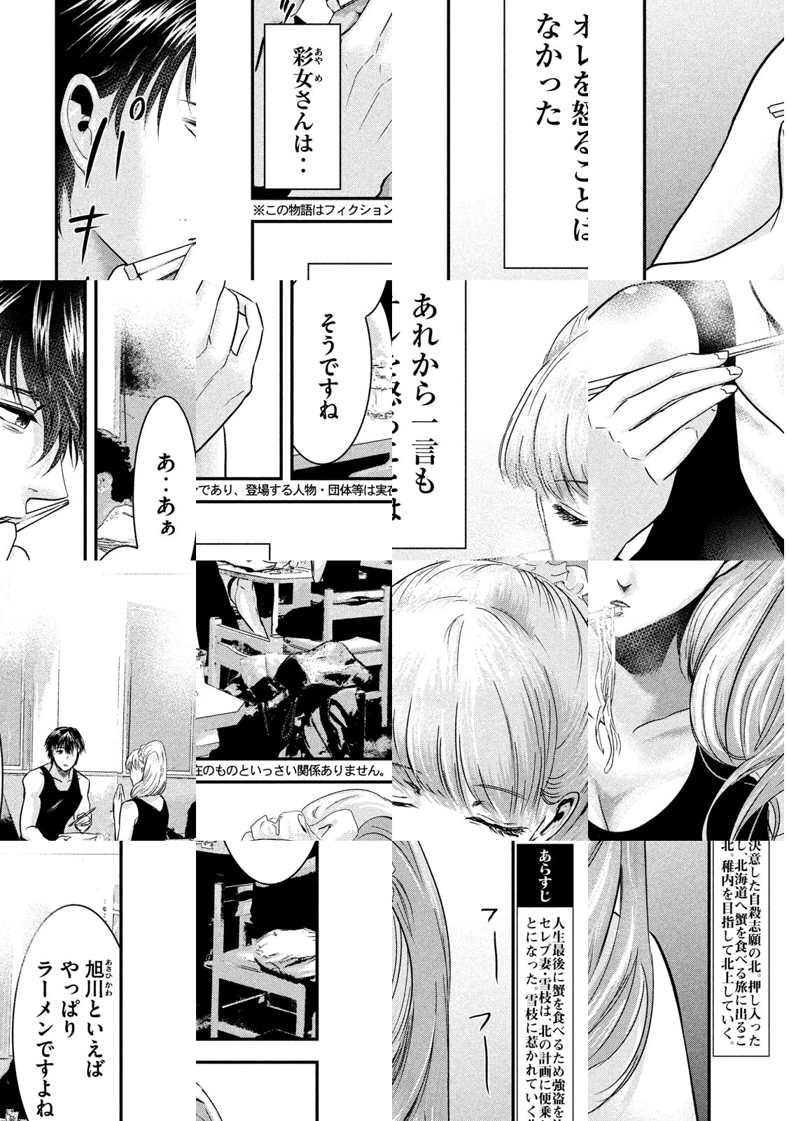 金も行き場もない男・北は、自殺を図るが、どうしてもあと一歩が踏み出せずにいた。ある日、テレビのグルメ番組を観て、「人生最後の日は北海道で蟹を食べたい」と思い立ち、強盗を決意する。高級住宅に押し入り、人妻に金を要求するが、彼女の行動は、全く予期せぬものだった――。