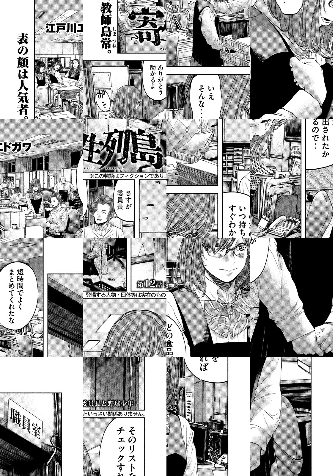 両親の離婚を機に、東京から地方の花山島に引っ越してきた女子高生・千堂千尋。彼女が移り住んだその島は、何かがおかしかった。露骨な部外者差別、突如行われる謎の儀式、そして島の真ん中に建てられた巨大な“給水塔”‥‥。島民同士が強固な繋がりを持つその島で、ある日、一人の漁師が自宅で滅多刺しにされる事件が起こる。島全体に猜疑心が湧き起こる中、見えてきた意外な犯人とは――。『生贄投票』の江戸川エドガワが描く、パラサイト・サイコスリラー!!