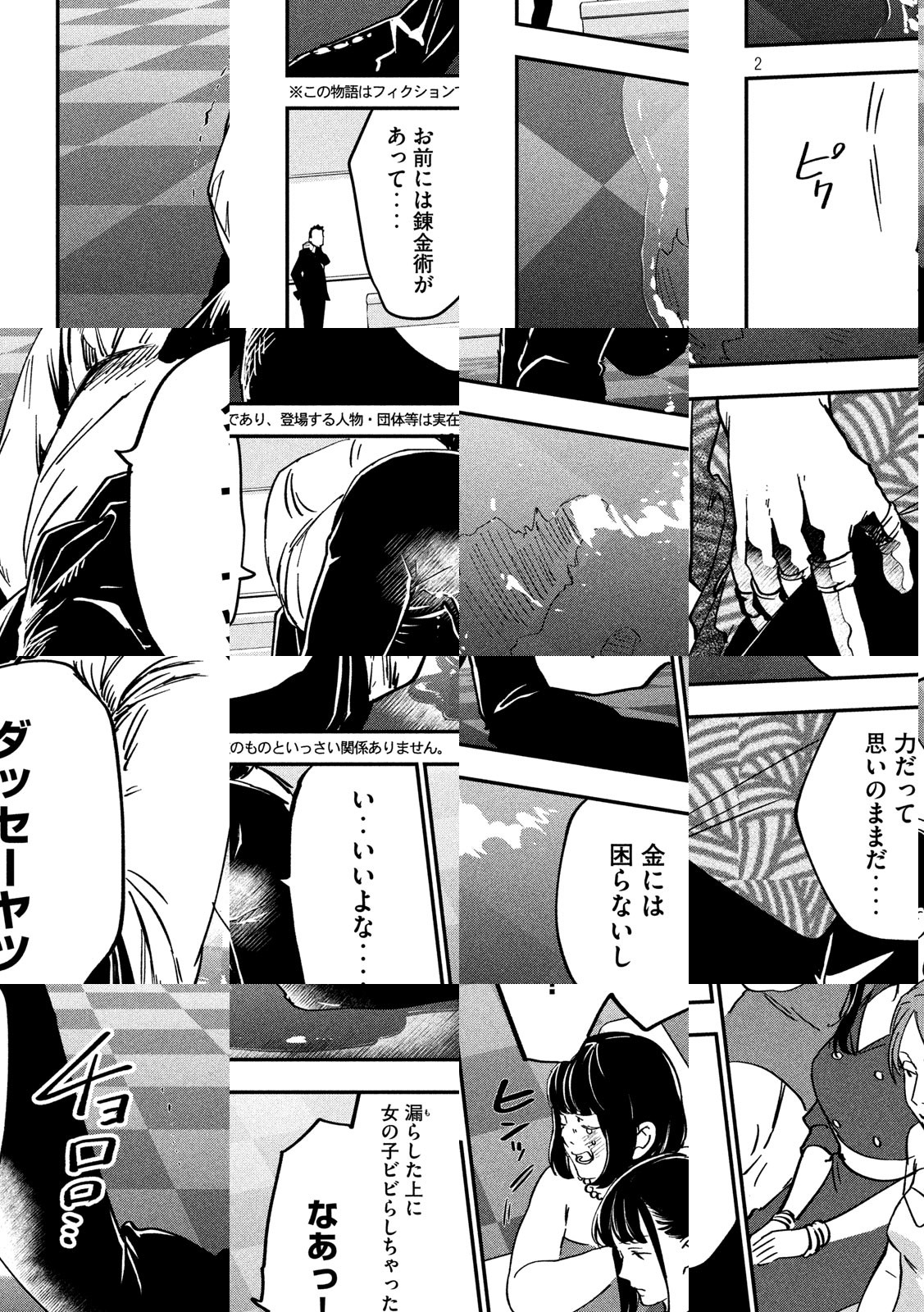 錬金術×極道! 禁忌なきダークファンタジー!! ヤクザの世界で「錬金術」を使う者たちをこう呼ぶ――“錬金無頼漢”と。死神と呼ばれる錬金無頼漢・氷﨑(ひょうざき)と、記憶をなくした少女・紅(くれない)の、未来を取り戻す旅が、今始まる。