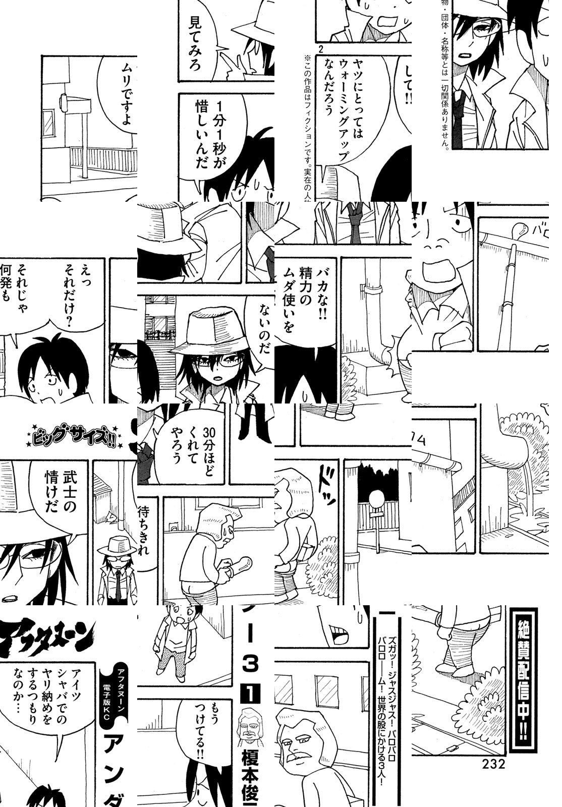 ずのーん!ジャスジャス!ザーン!バローム! 孤高のショート職人・榎本俊二が放出する濃密ギャグ! ミツオ&そう太&マリヨ、品性ゼロ以下の3人組が縦横無尽にかけまわる大活劇! アディオス、アミーゴ。