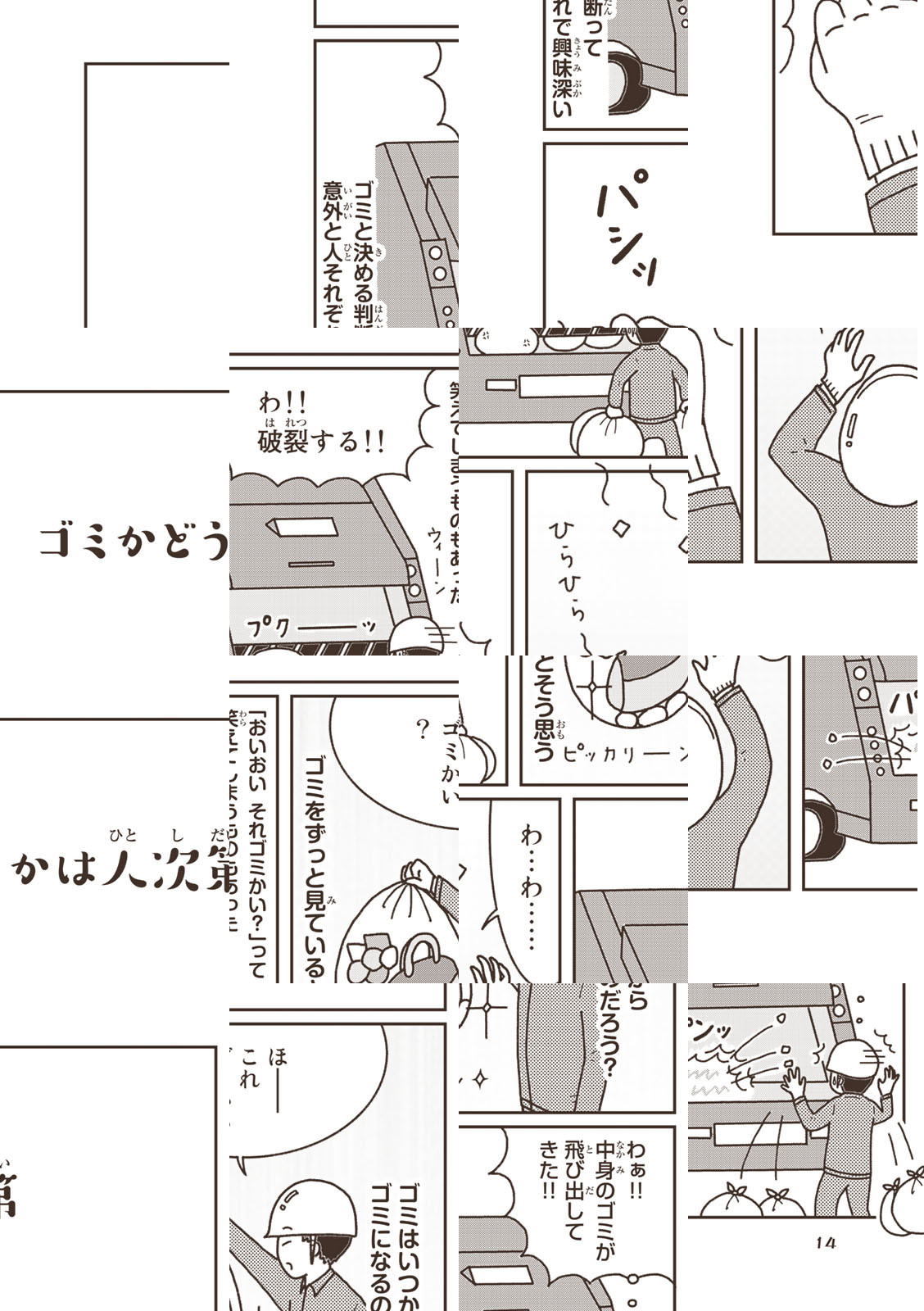 Twitterでバズりにバズり、2600万インプレッション超えのエッセイ漫画!SNS発の漫画の最終兵器!売れない芸人・マシンガンズの滝沢秀一は家族を養うためにゴミ清掃員に。何気ないゴミ清掃員の日常。その生活で見つけたゴミの知識やちょっとばっかりの幸せを届けます。滝沢秀一がネーム原作を、それを妻である滝沢友紀がタブレットひとつで作画。夫婦共作(どっちも漫画描いたことない)でおくるエッセイ漫画です。