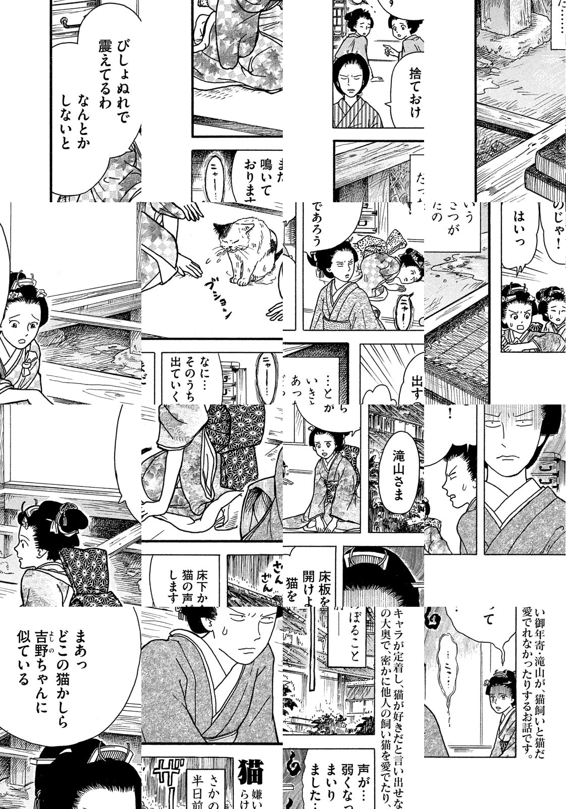 江戸時代。大奥に仕える女性たちの多くは、生涯独身であった。そんな彼女たちが、持てあました時間と愛情を注いだ対象、それは――にゃんと、ネコだった!? 大奥に暮らすオンナとネコの日常を描くほのぼのショート!