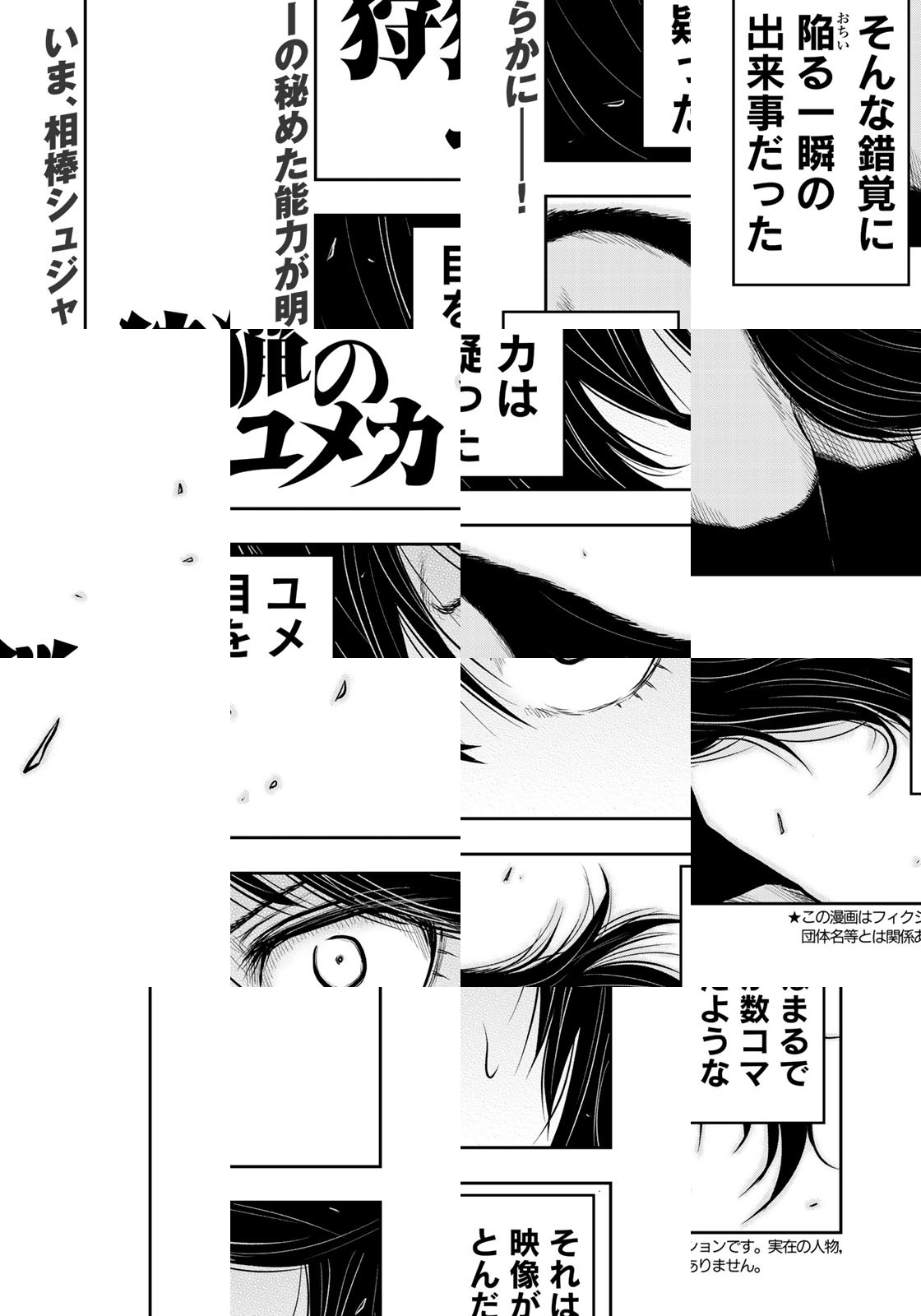 期待の新鋭が描く、「人×獣」異種間チームバトルロワイアル堂々開幕! 突如あらわれた人の言葉を解する獣たち。女性猟師・ユメカがある日突入したのは、獣に対する人の優位性が大きく揺らぐ世界だった。反目しながら、ときに異種間タッグチームとして協力し合い、謎に満ちたこの世界を生き抜くことはできるのか――!?