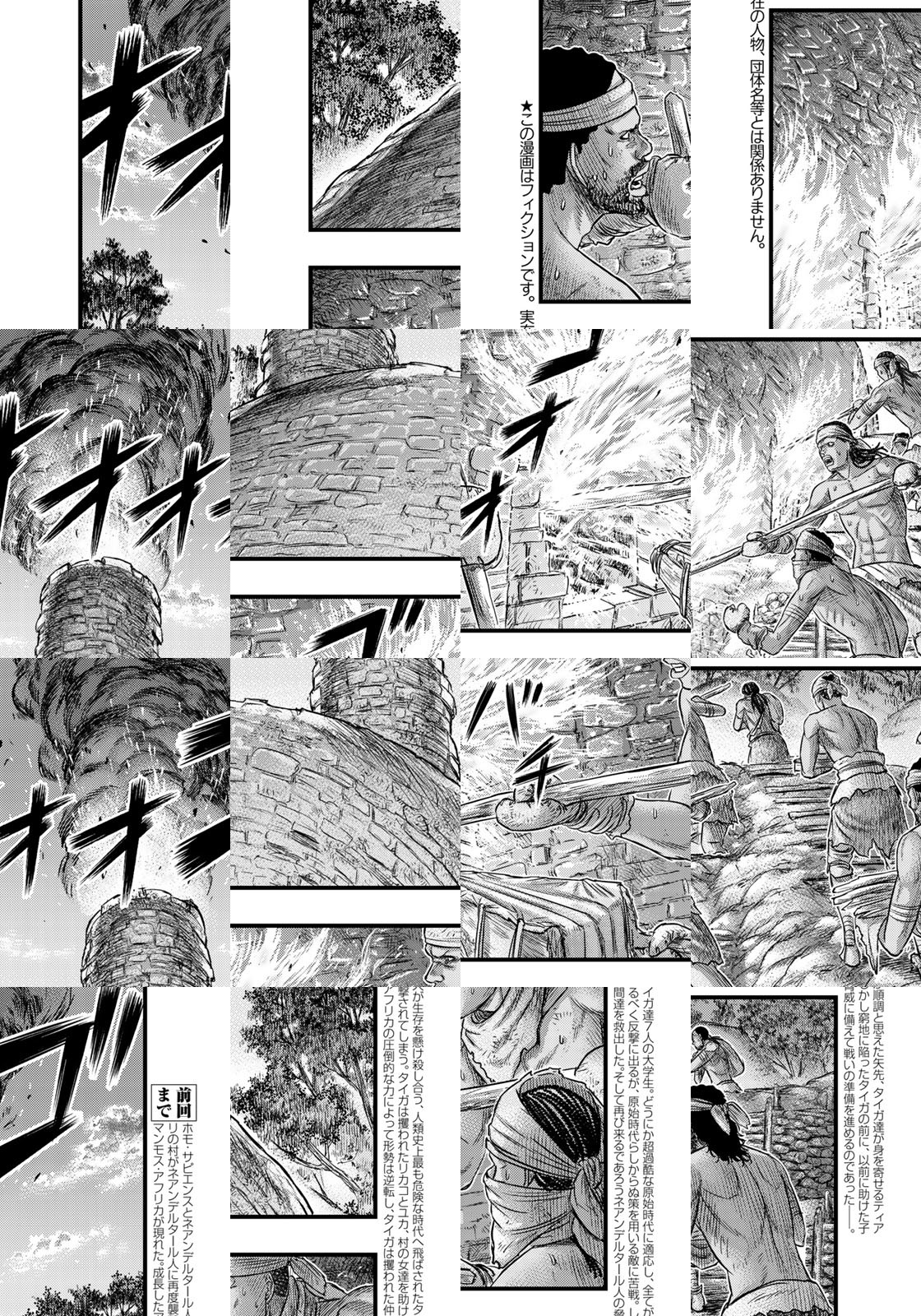 彼女にフラれ生きている実感の乏しい青年タイガ。大学の文化人類学のゼミ仲間とオーストラリアへ卒業旅行に出かけた彼は偶然入った洞窟で観光ガイドにも載っていない古代の壁画を発見する。直後に起こった崩落からからくも逃れた彼らは入り口とは別の穴から外に出るがそこはマンモスや古代の巨大哺乳類が跋扈する世界だった。「ホーリーランド」「自殺島」リアルな人間を描かせたら右に出るもののいない森恒二の最新作。