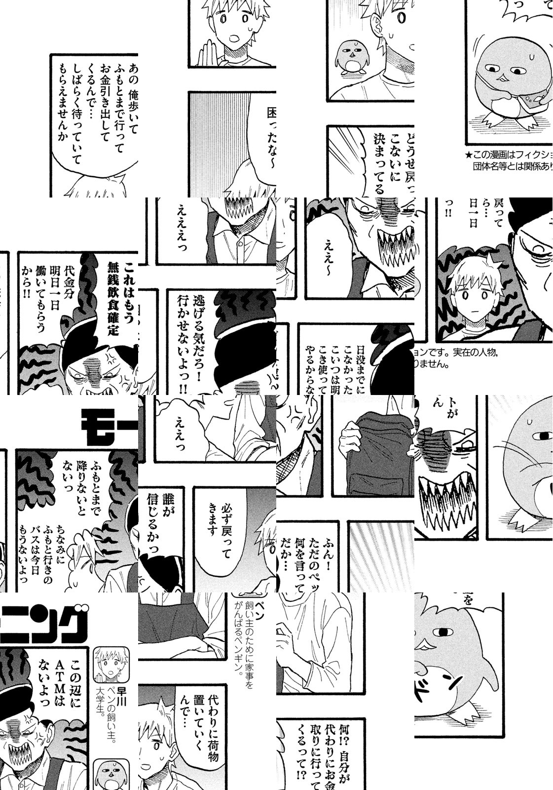 飼い主のため、かいがいしく家事をするペンギン(?)のペン。料理・洗濯・掃除など、かなりのクオリティでこなしてくれる。でもペンの想いはなかなか飼い主に伝わらない。家事をがんばってもがんばっても、なぜかすれ違い続けてしまう。それでも、いつか想いが報われることを夢見ながら、ペンは家事をし続ける。そう、ペットがただ飼われる時代はもう終わったのだ。一家に一ペンの時代、到来中‼
