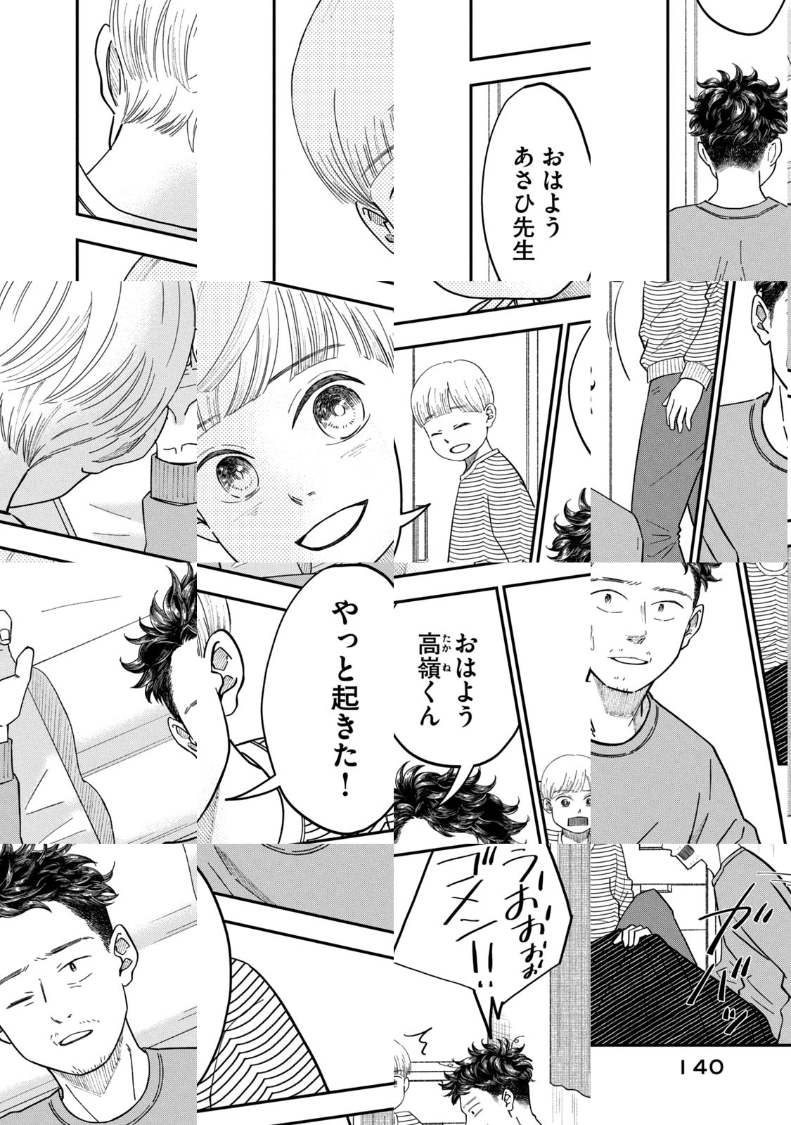 漫画家である鈴木旭のもとに、保育士時代の生徒である山本高嶺から手紙が送られてきた。鈴木は、懐かしく想い高嶺と出会い交流を深めていく。高嶺は、母親と離れ、児童養護施設で暮らしていた――。他人の息子を育てることはできますか? 家族は、血が繋がってなくてもいいですか? 30代独身男と少年の、里親・里子物語。