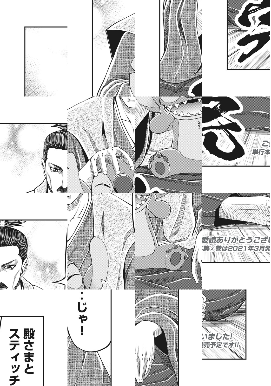 あのスティッチが戦国時代に!? 銀河連邦から命からがら逃亡したスティッチが不時着したのは、ハワイではなく日本。…それも、戦国時代の日本だった! 下剋の国を平らげ、民から恐れられる戦国武将・大和命尊は、空から降ってきたスティッチと遭遇。その姿を見るうち、自らの胸の裡に初めて沸き上がる感情に困惑する。「…可愛い――――。」戦国武将・命尊と宇宙生物・スティッチとの心の交流を描くハートフルコメディ、ここに開幕!