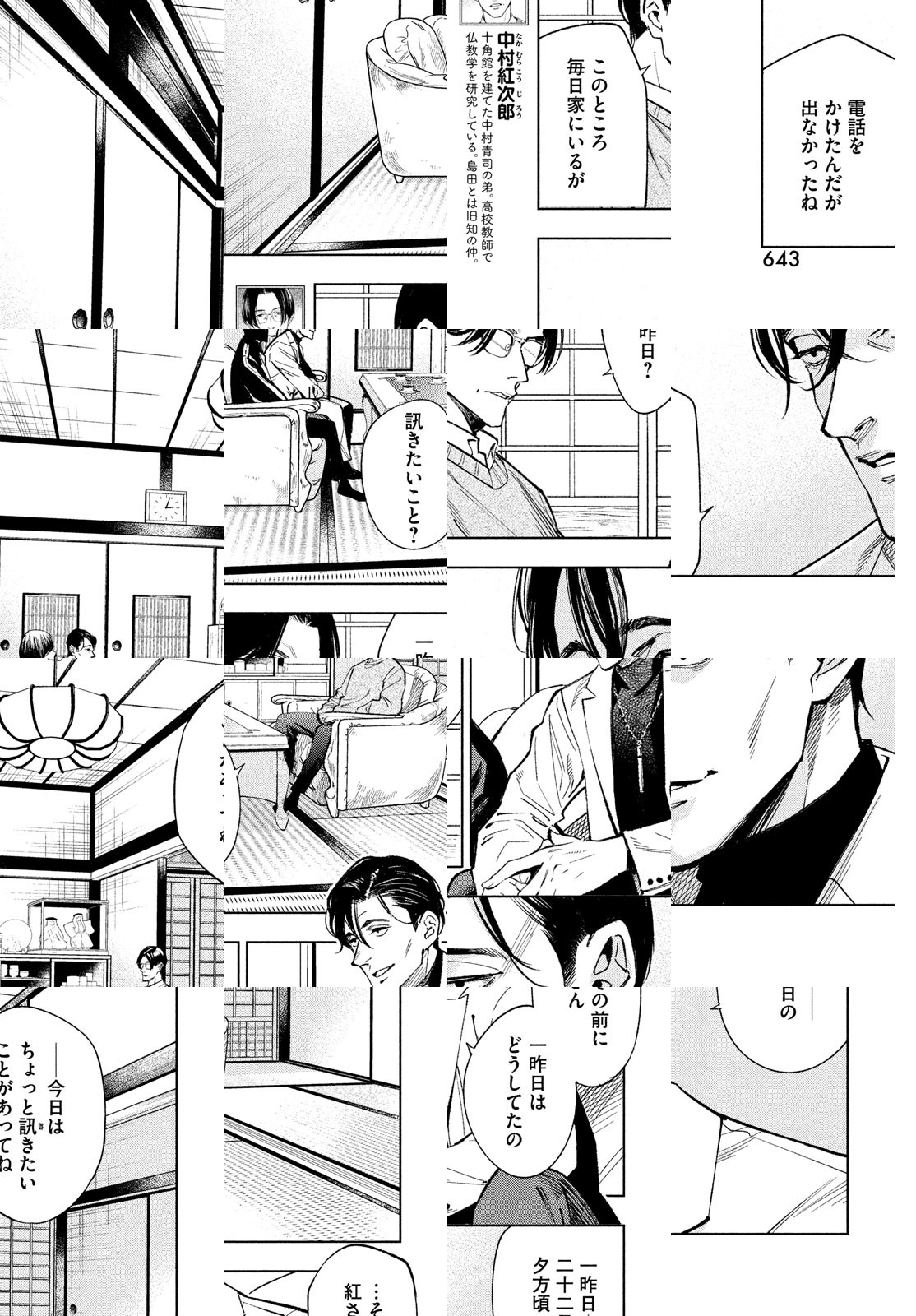 孤島に建つ十角形の奇妙な館を、大学のミステリ研究会に所属する7人が訪ねる。この館を設計した中村青司は、半年前に謎の焼死を遂げていた。そして、凄惨な殺人劇が、幕を開ける――。2018年に第22回日本ミステリー文学大賞を受賞した綾辻行人による新本格ミステリ『十角館の殺人』を、美麗画力の清原紘が描く!