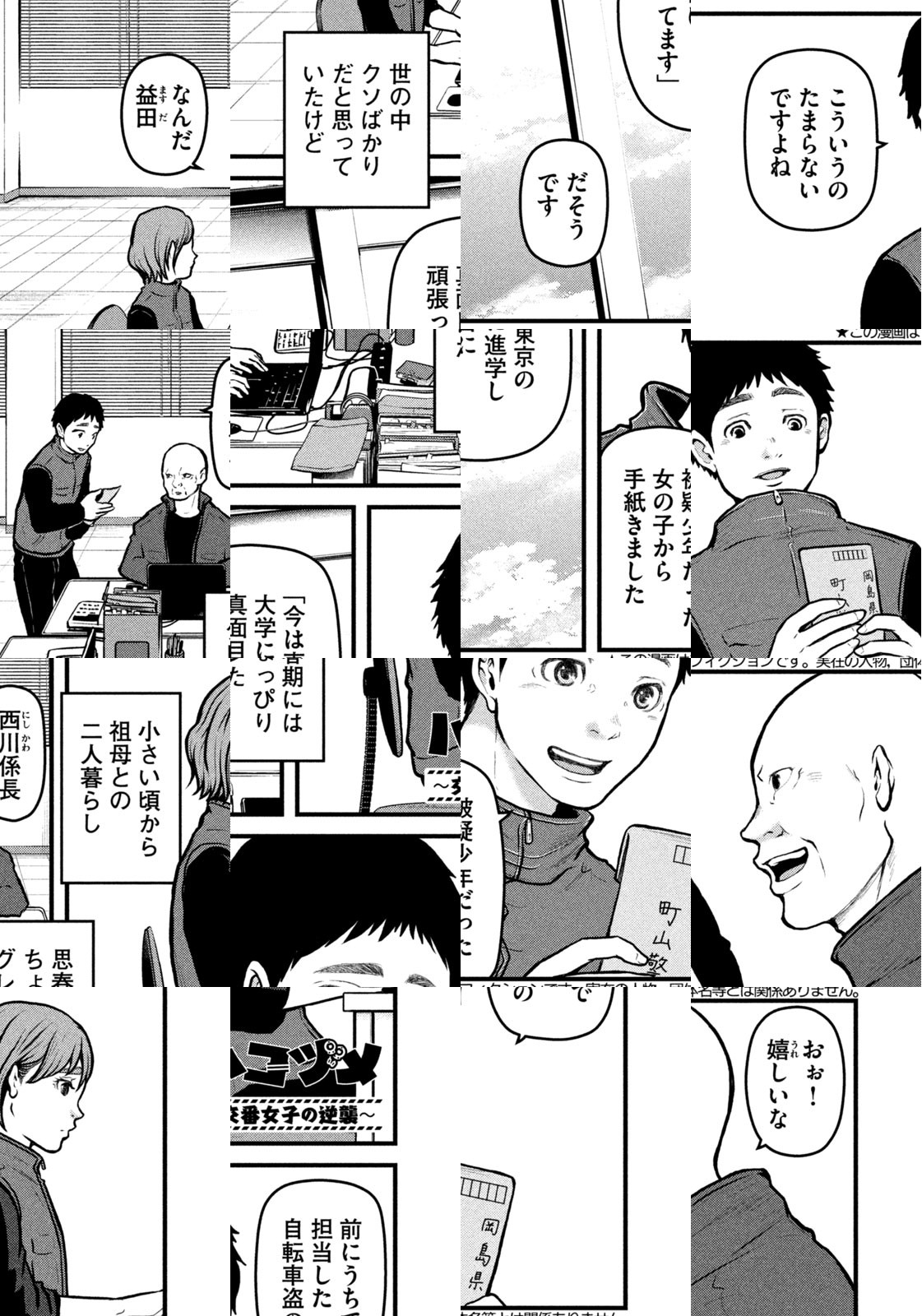 「もう辞めてやる!」辞表を握りしめた新米女性警察官・川合の交番に、なぜか刑事課から超美人の藤部長が配属されてきた。「岡島県警(の男性陣)を絶望におとしいれるコンビ」の誕生である。某県警に勤めること10年、隠そうとしても漏れ出てくる作者の本音がヤバい! 理不尽のち愚痴、時々がんばる、誰も見たことのない警察漫画。※労働基準法は警察官に「一部」適用外です。