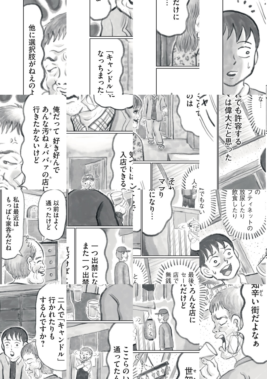 かつて清野とおるが執筆を断念した“青春の一ページ”……。それは、『東京都北区赤羽』という作品を抹消しうる恐れのあった、禁断のスナック「キャンドル」に関するエピソード。東京都北区十条の片隅で営巣していた「魔」、そこを牛耳る「ママ」、そして、誘蛾灯に引き寄せられたかのように店に集う珍奇な「客」を通して、底のない悲喜劇が描かれる。