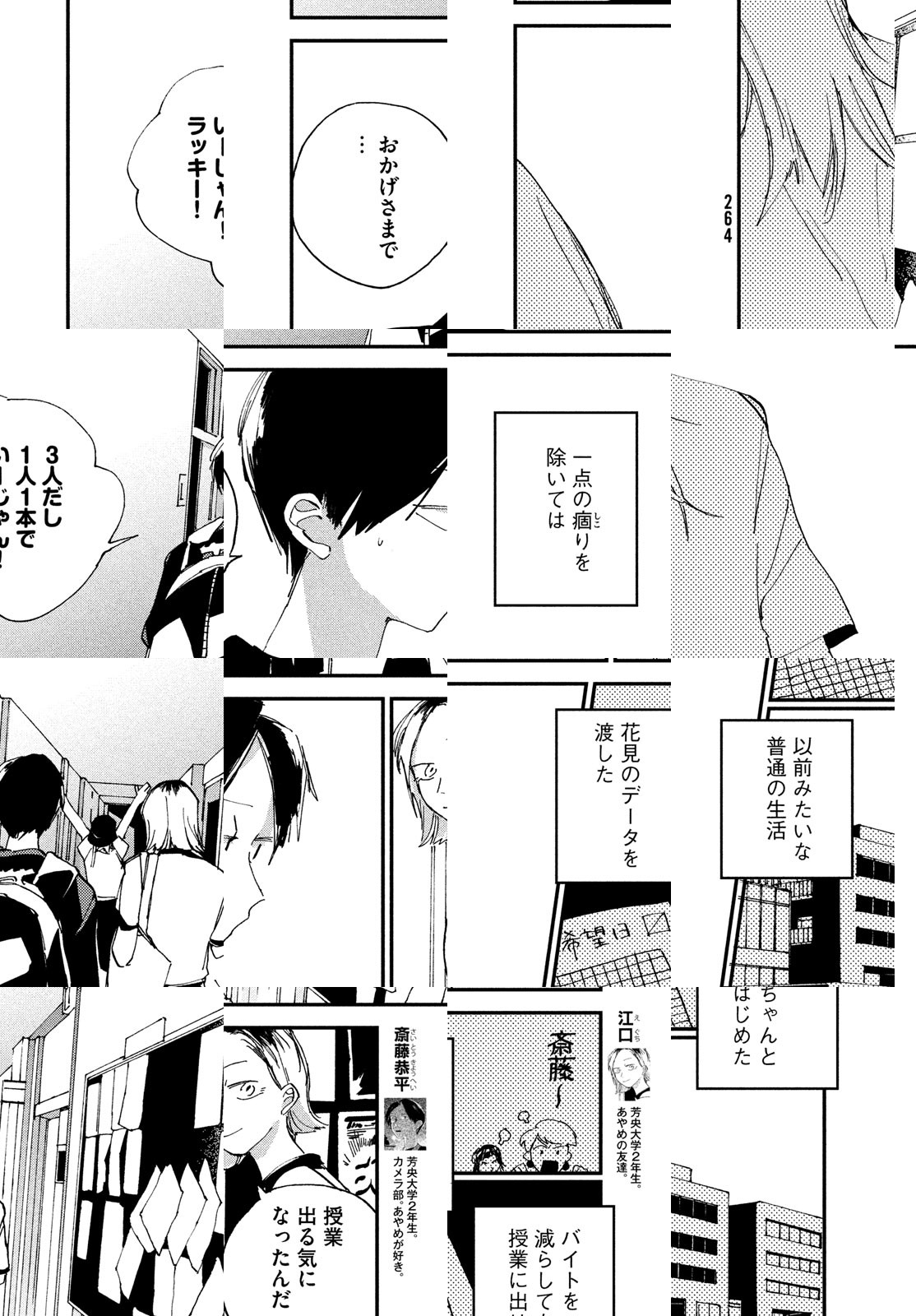 卑屈でネガティブ、いわゆる“陰キャ”の大学一年生・斎藤恭平は、同級生のミスコン美女・小川あやめに恋をした。スポットライトの向こうに立つ女神に、モブの想いは届くのか。青春の煌めきと無力さの間で揺れ動く青春群像劇、開幕!