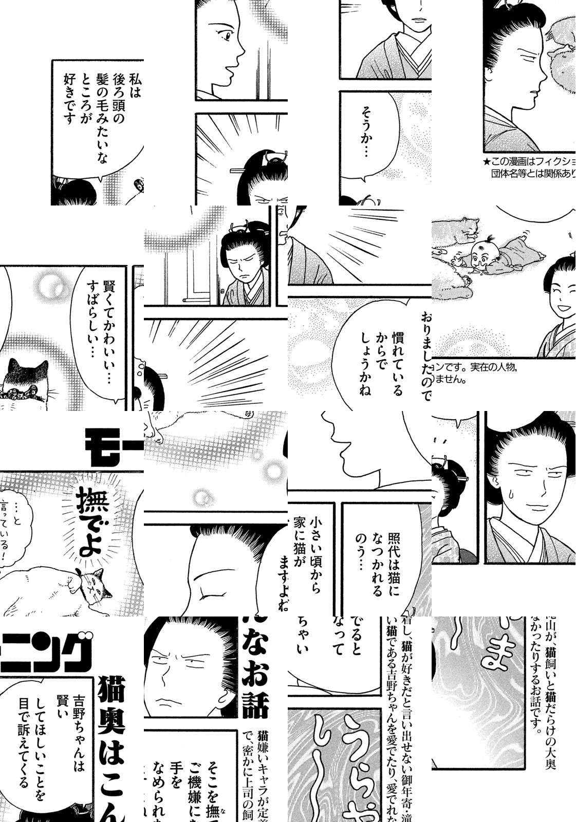 江戸時代。大奥に仕える女性たちの多くは、生涯独身であった。そんな彼女たちが、持てあました時間と愛情を注いだ対象、それは――にゃんと、ネコだった!? 大奥に暮らすオンナとネコの日常を描くほのぼのショート!