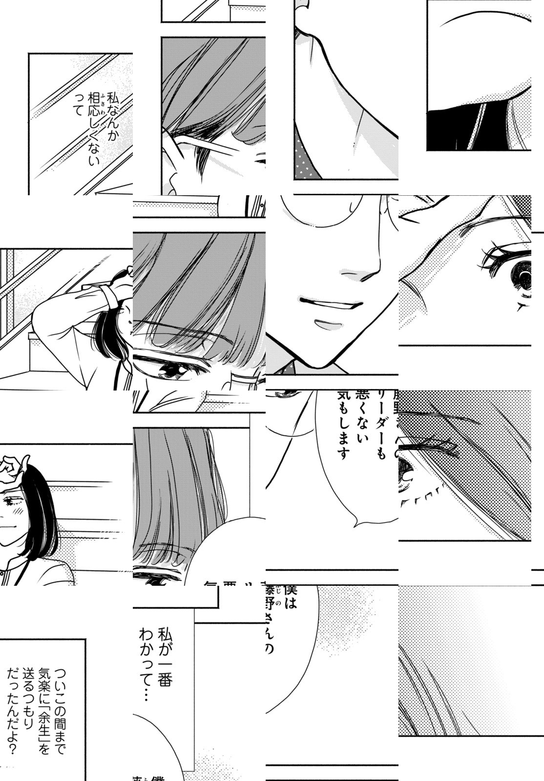高2の息子を持つ39歳のシンママ・玲奈。「アラフォー」で「ママ」が恋愛なんてみっともないからしない。定時で帰る職場では、出世は望まず「おかん」に徹する。など、何かとカテゴライズし「世間体良く」を第一にしている。子育ても落ち着いてきて、もう「余生」を送っているような気分。そんな折、80歳近い祖母の恋愛が発覚し、玲奈はある決意をする。その後、憧れの人と再会し!新入社員に告られ!凪だった人生が動き出す!?