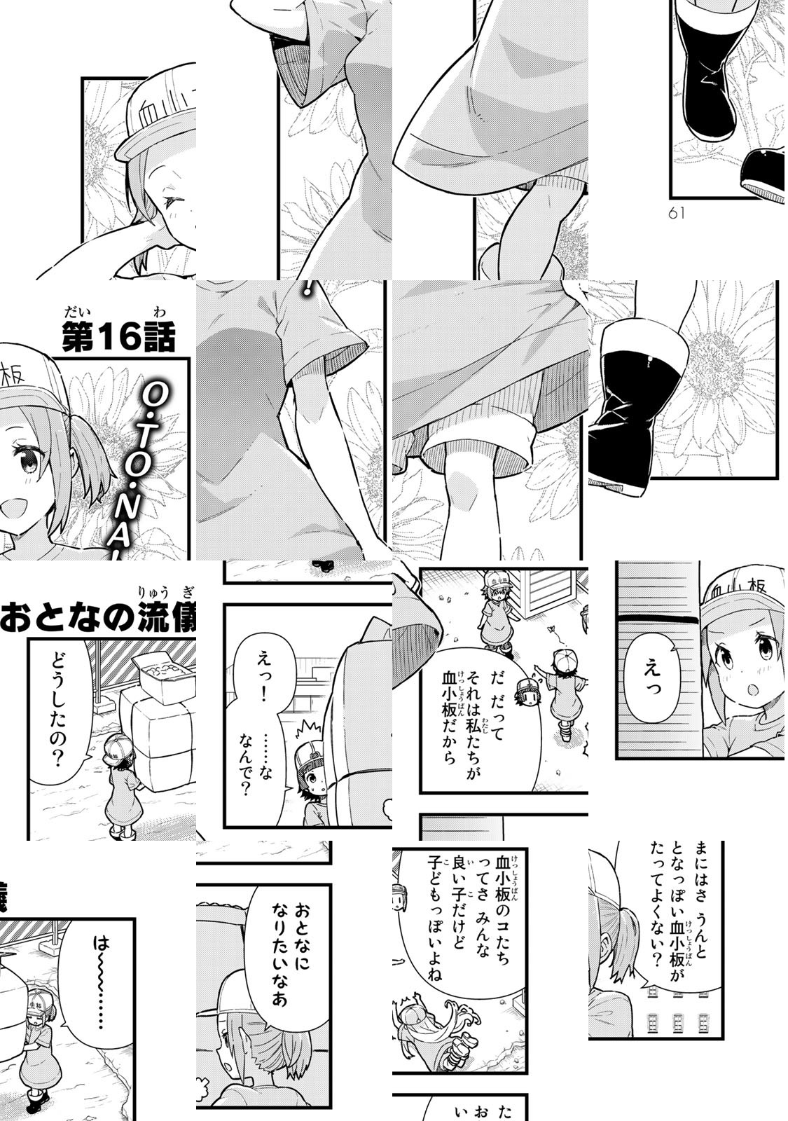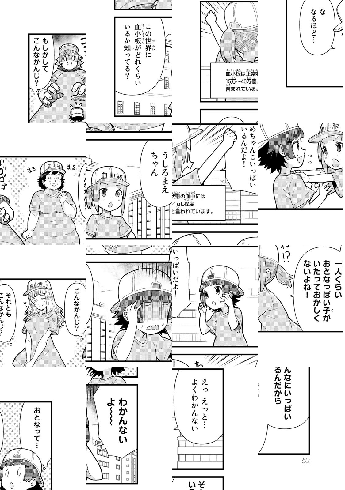 体の傷も 心の傷みも 血小板(わたしたち)が治します! 37兆個の細胞がはたらく人間の身体の中でも、とりわけの人気者。この小さな女の子たち血小板ちゃんは、こう見えて止血のプロフェッショナルなのです! そんな彼女たちの日常や仕事ぶりを、ホッコリかわいくお届けします!